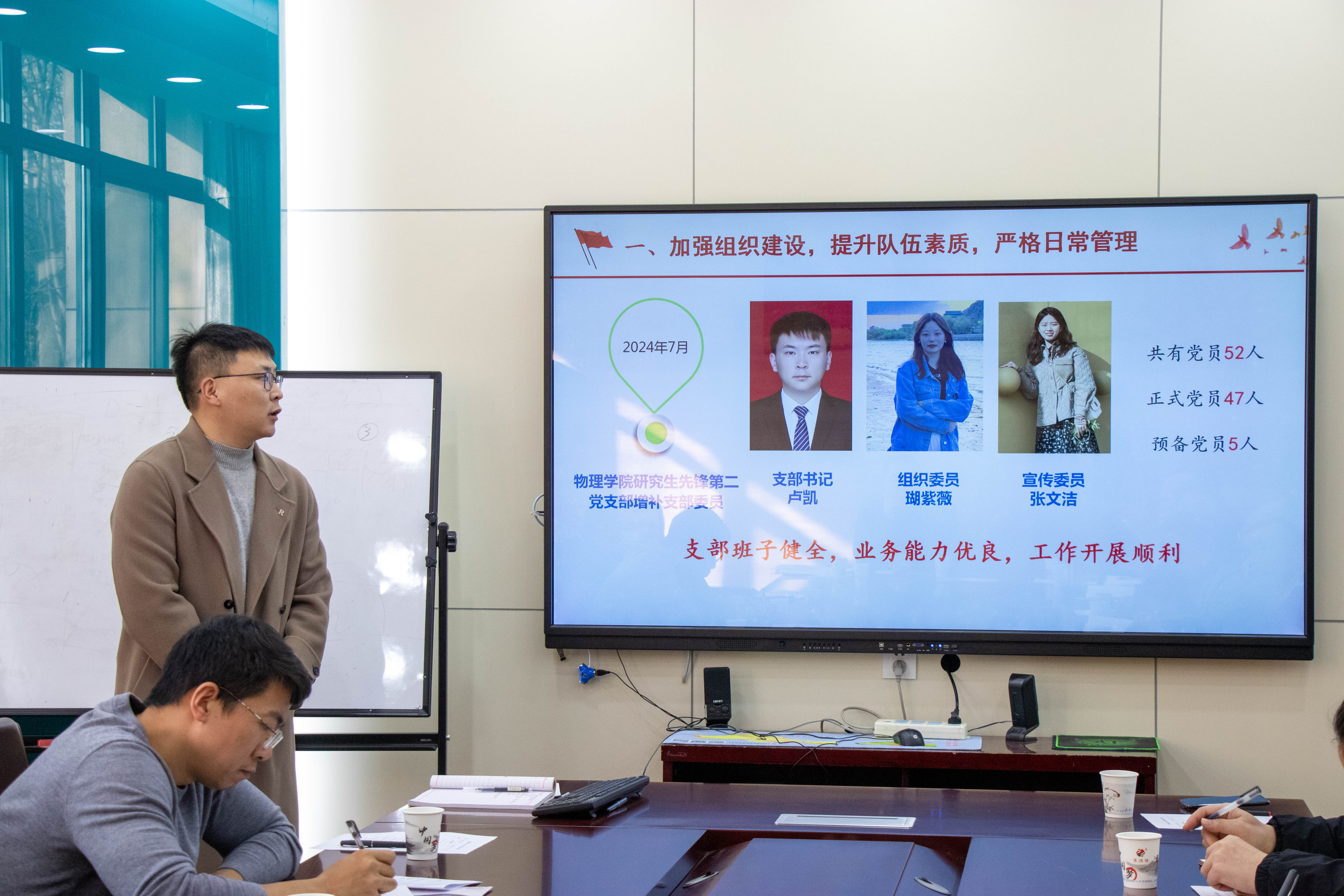 党委书记张军丽总结指出,党支部书记述职考核既是对支部年度工作的梳理总结,也是对支部书记党务工作的能力检阅,更是支部委员交流学习的宝贵机会,对各党支部党建工作取得的成绩给予充分肯定,并从提高政治站位提升政治理论学习效果、落实“从严治党”要求提升规范化建设水平、聚焦学科发展重大事项提升战斗堡垒作用三个方面对支部工作进行了安排部署,希望各支部再接再厉,自觉将二十届三中全会关于教育科技人才的改革创新精神融入教育、管理、监督党员之中,落实到宣传、凝聚、组织、服务师生之中,围绕学科发展大局,立足各自任务特点,不断加强支部班子建设,全面落实各项党建任务,以高质量党建推动学院事业高质量发展,为物理学科的“双一流”建设争做贡献。