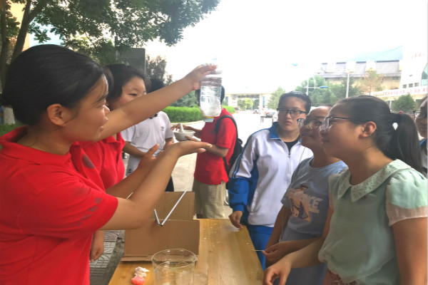 下午,实践队在延安大学窑洞广场以展板宣讲的方式,让延安大学的师生们了解侯伯宇先生的生平事迹。侯伯宇先生对党、对祖国的忠诚、对科学事业的热爱;积极探索、勇攀高峰,潜心育人、甘为人梯,淡泊名利、无私奉献的共产党人崇高的思想境界和价值追求。侯伯宇先生完美的诠释了党员教师的可贵科学精神、职业素养和道德风范,吸引着每一位过路的同学驻足倾听。同时,实践队在校园内演示许多趣味物理实验,使得很多同学感受到物理的魅力,被物理的奇妙所吸引,进而为这些物理现象而思考。