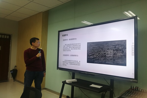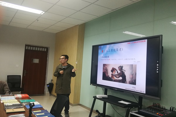 信息技术学院张晓同学分享的题目是:迎接人工时代的到来——从微信小程序谈起。他从“玩”、“看”(人工智能简史)、“辩”(人工智能、数据挖掘、机器学习、模拟识别)、“学”(分类器、推荐系统)、“思”(人工智能能取代人类吗?)非常清晰地向我们呈现了人工智能的工作原理。让我们对机器学习有了较为清晰的认知。最后他向我们介绍自己对人类与人工智能在未来的关系的奇思妙想。在整个分享中,大家笑声不断,赢得大家热烈的掌声。他为同学们推荐的两本书是李开复的《人工智能》和董振华等著的《奇点临近》。