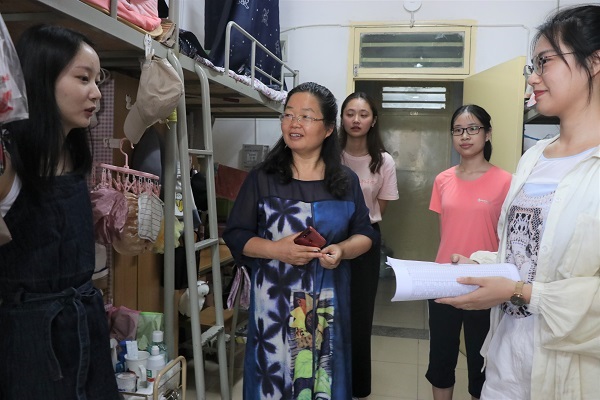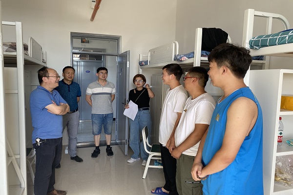 为了解必赢本科生返校后学习生活等状况,9月3日中午,学院党委书记张军丽、副书记杨军良、辅导员卢凯、段钰及学生会和班干部利用午休时间,来到必赢2017级、2018级、2019级本科生所在寝室看望慰问。