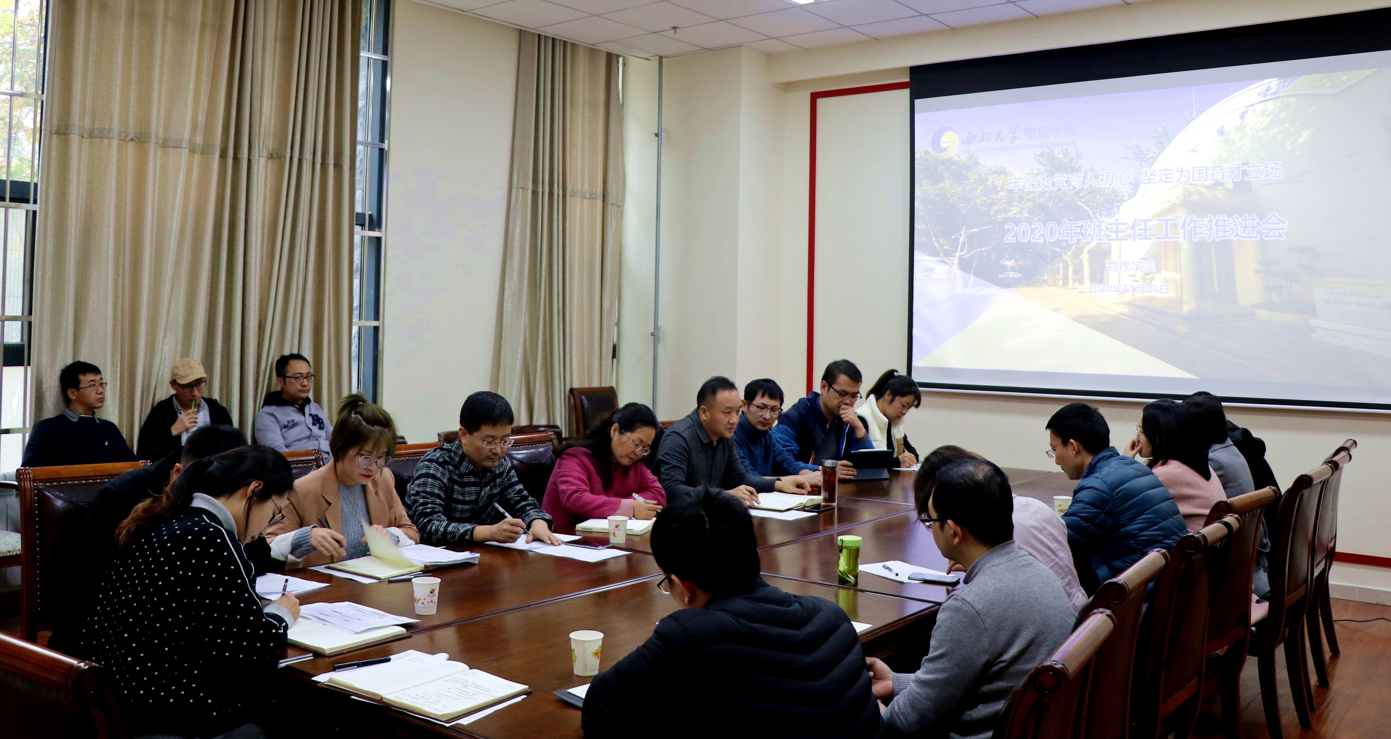 11月13日下午,必赢在112会议室召开了以“牢记为党育人初心 坚定为国育才立场”为主题的2020年班主任工作推进会,院党委书记张军丽、教学副院长郑新亮、党委副书记杨军良、全体班主任及辅导员参加了此次会议。会议由党委副书记杨军良主持。