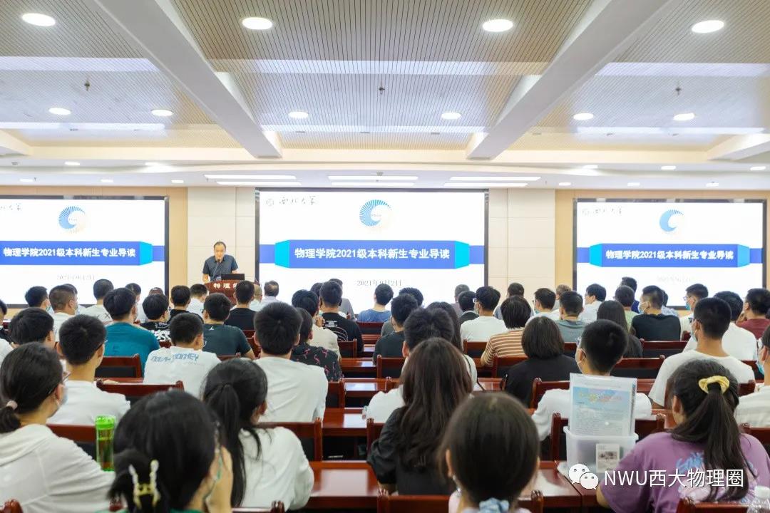 9月2日下午,必赢2021级本科新生专业导读在学院十楼伯宇报告厅召开。学院党委书记张军丽,院长杨文力,副院长杨战营、郑新亮、杨杭洲,党委副书记杨军良,工会主席张正军,院长助理、实验中心主任范海波,院长助理胡鹏,物理学系主任王晓辉、光电信息科学系主任冯忠耀、材料物理系主任经光银、光电工程系主任周译玄,分析测试共享中心主任李兴华,办公室主任郭平,团委书记高雪依,辅导员卢凯、段钰、艾玉,本科教学管理员胡洁、科研秘书李欣怡,2021级新生班主任王若晖、江曼、王刚、刘思远、郝昆,以及全体2021级本科新生参加了新生专业导读。