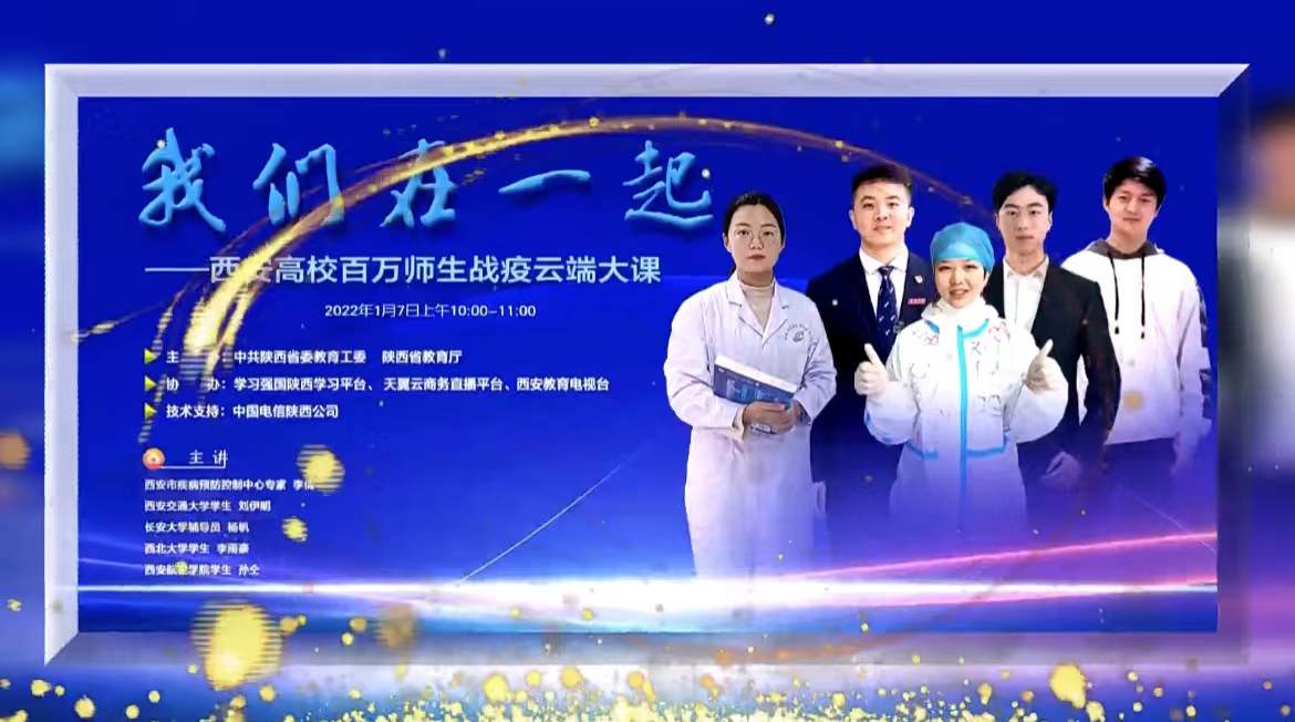 为进一步教育引导广大师生自觉践行伟大抗疫精神,在疫情防控阻击战的生动实践中践行“请党放心,强国有我”的铮铮誓言,1月7日上午,必赢学生工作干部和全体学生共同收看“我们在一起——西安高校百万师生战疫云端大课”。