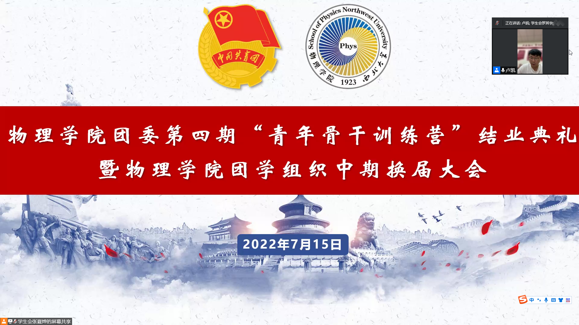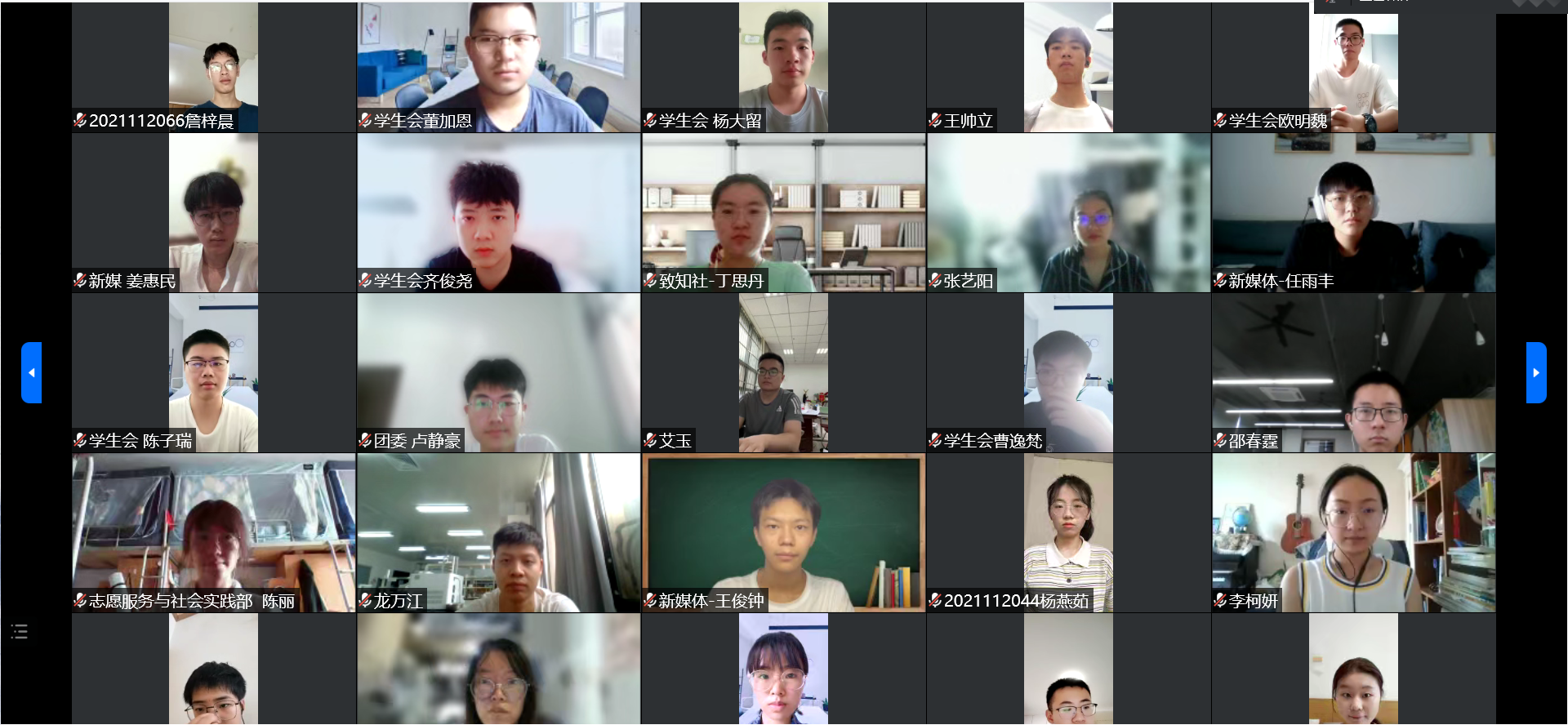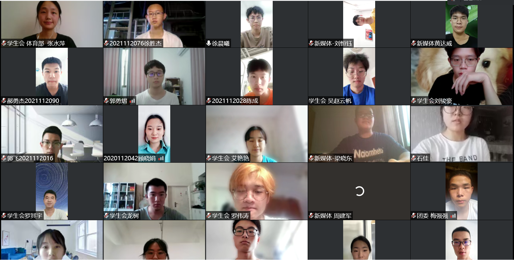7月15日下午,366net必赢官网团委举办第四期“青年骨干训练营”结业典礼暨366net必赢官网团学组织中期换届大会在线上隆重举行。学院党委副书记杨军良、院团委书记高雪依、院团委副书记段钰、专职团干艾玉、团学组织主要负责人及全体青马学员参加了本次活动。本次活动由学院团委副书记卢凯老师主持。