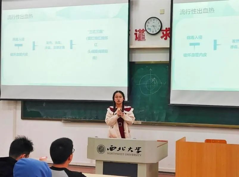 彭乐儿学姐给大家普及了出血热的预防知识。她指出,出血热是由汉坦病毒引起的多器官功能损害,是对于症状的一种描述,并不会出现人传人的现象,也并不是我们口中的鼠疫,只要做好预防措施,出血热就会远离我们。