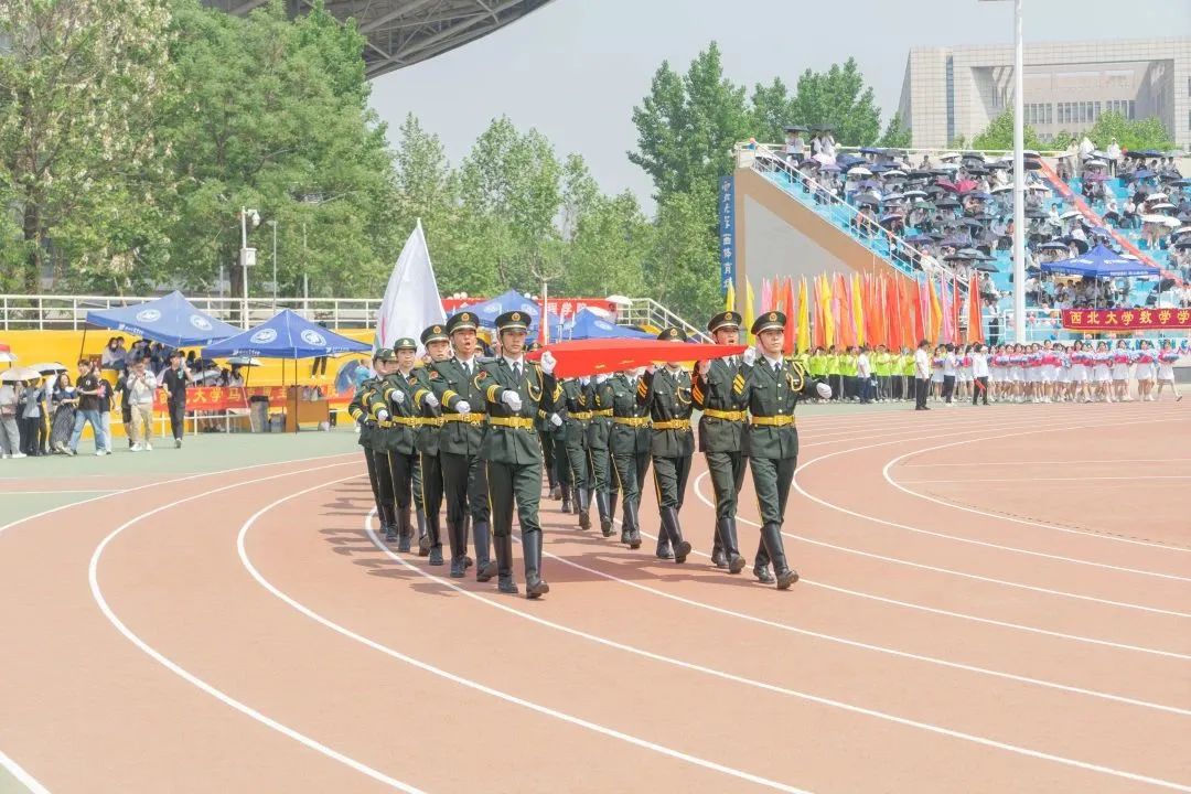 铿锵步伐敲碎午后的寂静,金色的霞光深镀赫赤的国旗,青春的朝气点燃激情的火焰。守一面国旗,承一份荣誉,肩一份责任,随着国旗护卫队的入场,366net必赢官网2023年田径运动会正式开始。