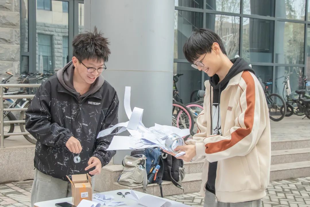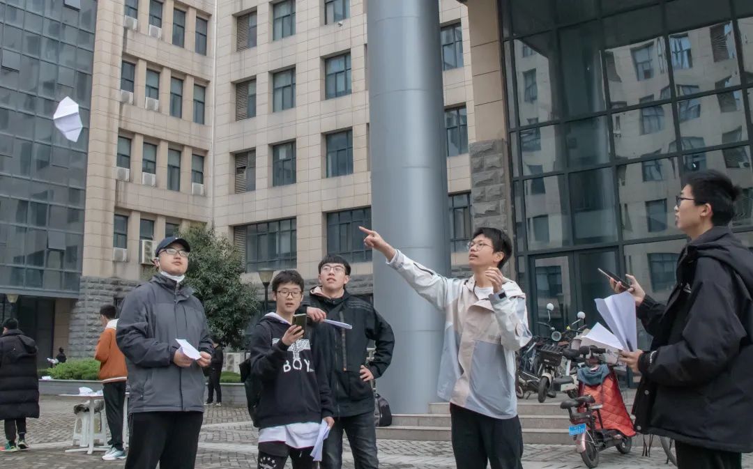 活动现场,同学们热情高涨、跃跃欲试,意气风发的青春身影摩拳擦掌,巧捷万端的独特思维激烈碰撞,只稍一会,同学们手中的纸便都幻化成各式各样的飞机造型。