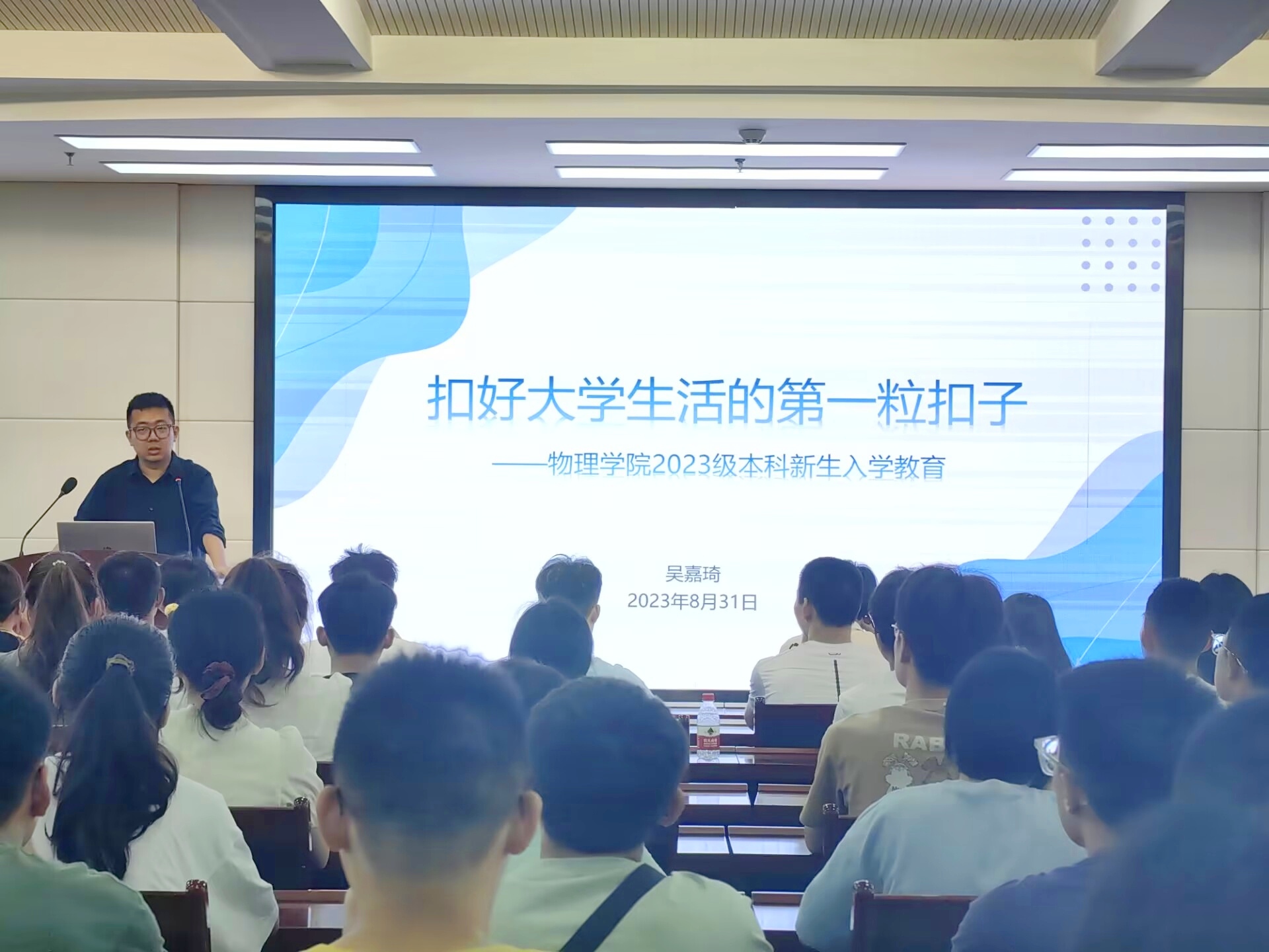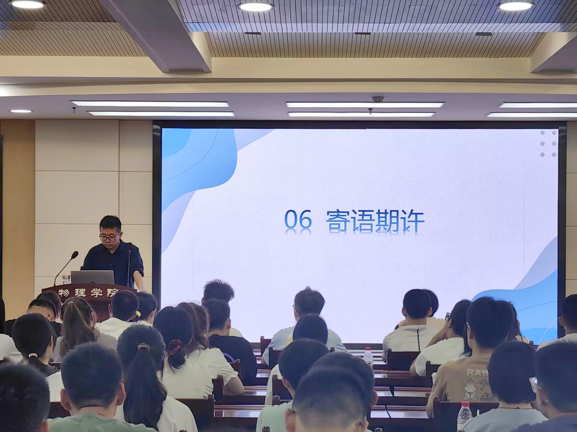 首先,吴嘉琦老师从366net必赢官网、发展历程、知名校友等方面对366net必赢官网进行了介绍,带领同学们领略了366net必赢官网物理学科的百年风采,并号召大家向侯伯宇教授、罗健夫先生等时代楷模学习,展现新时代物理学子的风采。