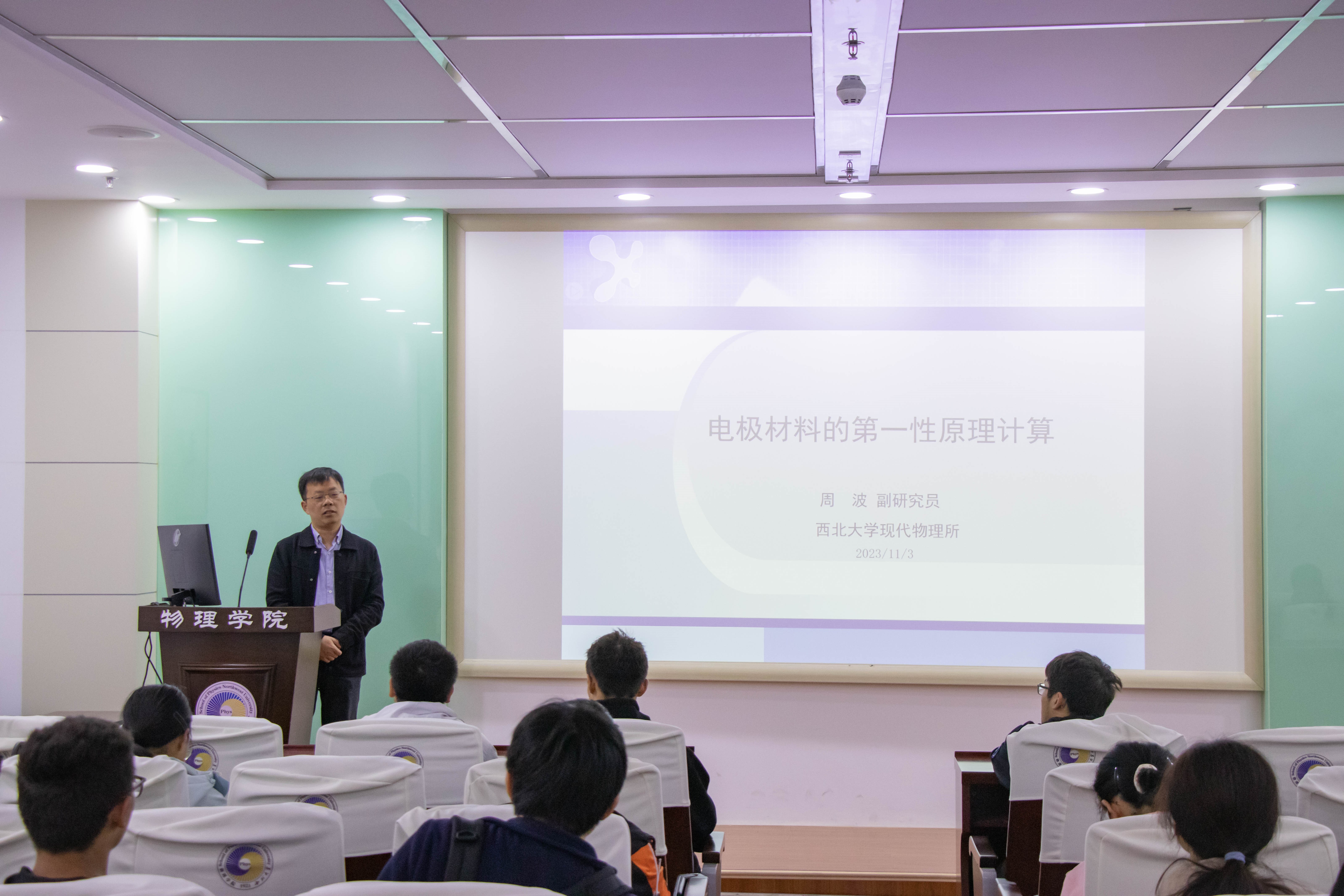 11月3日中午,周波副教授开展题为“电极材料第一性原理计算”的讲座。在本次讲座中,周老师指出电极材料的研究有利于环境保护以及节约能源问题,并提出其在软硬件领域的广泛应用,他就材料的电、光、磁学性质进行了详尽的介绍,并讲解了诸多光谱的计算方法及所得结果,在指明当前国家对环境保护与能源节约方面迫切要求的基础上,让同学们对新型材料电池充放电原理有了更深一步的了解,更体现了国家对材料科学发展的重视与高要求。