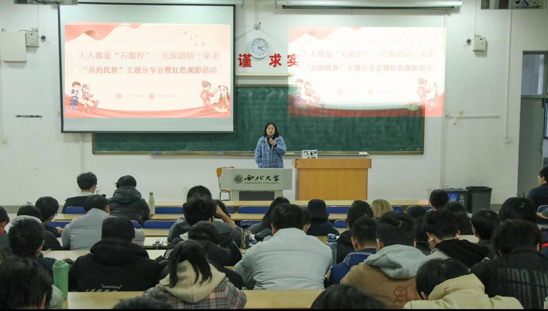 为深入学习贯彻落实党的二十大精神以及习近平总书记关于加强和改进民族工作的重要思想,不断巩固和发展平等、团结、互助、和谐的社会主义民族关系,推动铸牢中华民族共同体意识宣传教育走深走实,更好地了解少数民族文化、促进民族团结,11月16日下午,必赢2022级少数民族同学及其他本科生在3J101教室开展“我的民族”主题分享会暨红色观影活动。分享会由辅导员宋云霞主持。