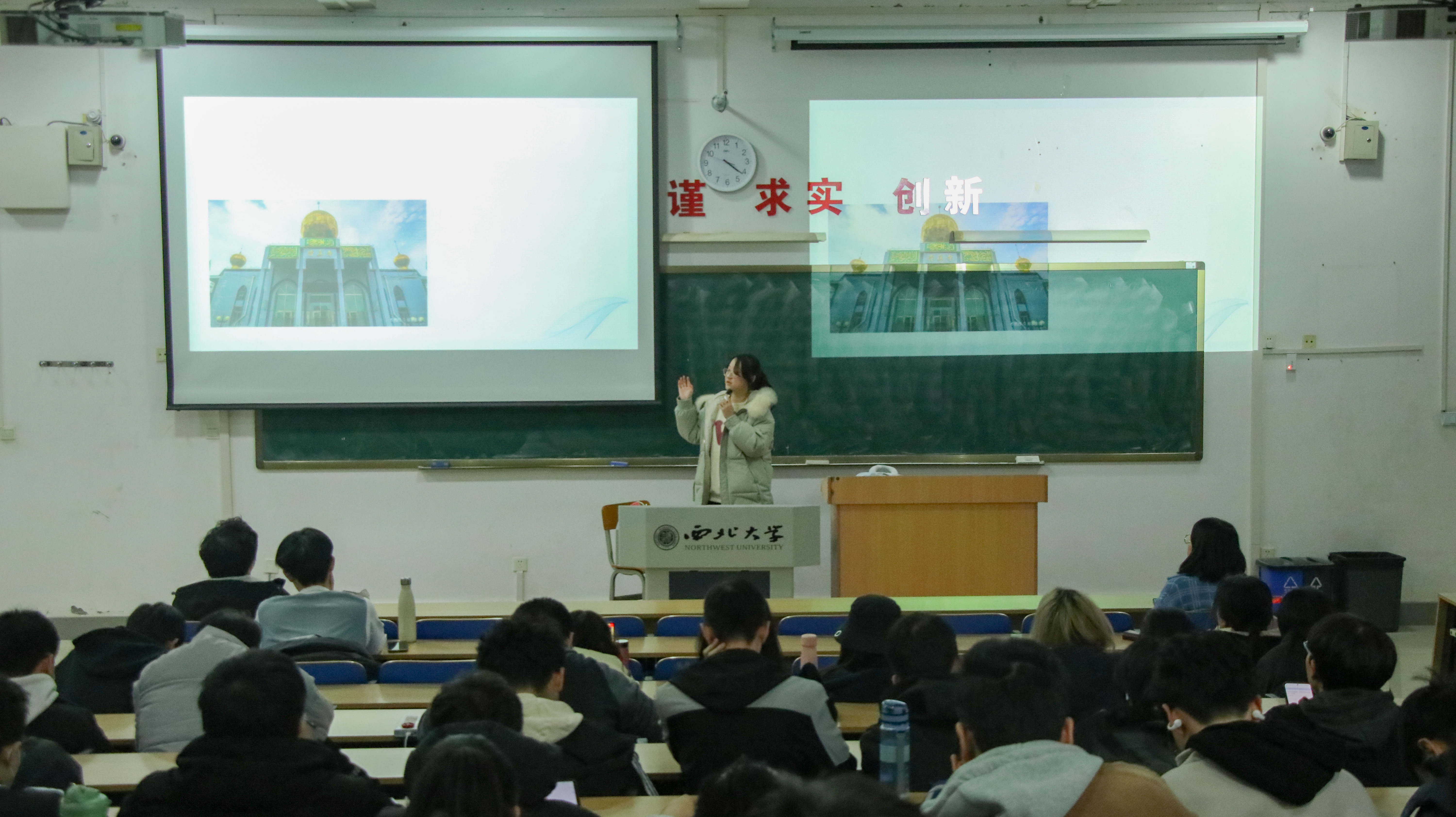 来自回族的刘嘉玉同学向我们介绍了“回族那些事儿”。她从饮食习惯、传统文化等多个方面向我们展示了回族同胞的节日礼仪和风俗习惯。她以开斋节为例,向我们分享了节日中的趣事。此外,她还介绍了具有回族民族特色的服饰和美食等,同学们纷纷表示,此次分享会不仅使我们对回族文化有了更深入的了解,也对文化多样性有了更深刻的认识,同时也充分感受到了回族文化的独特魅力和深厚底蕴。