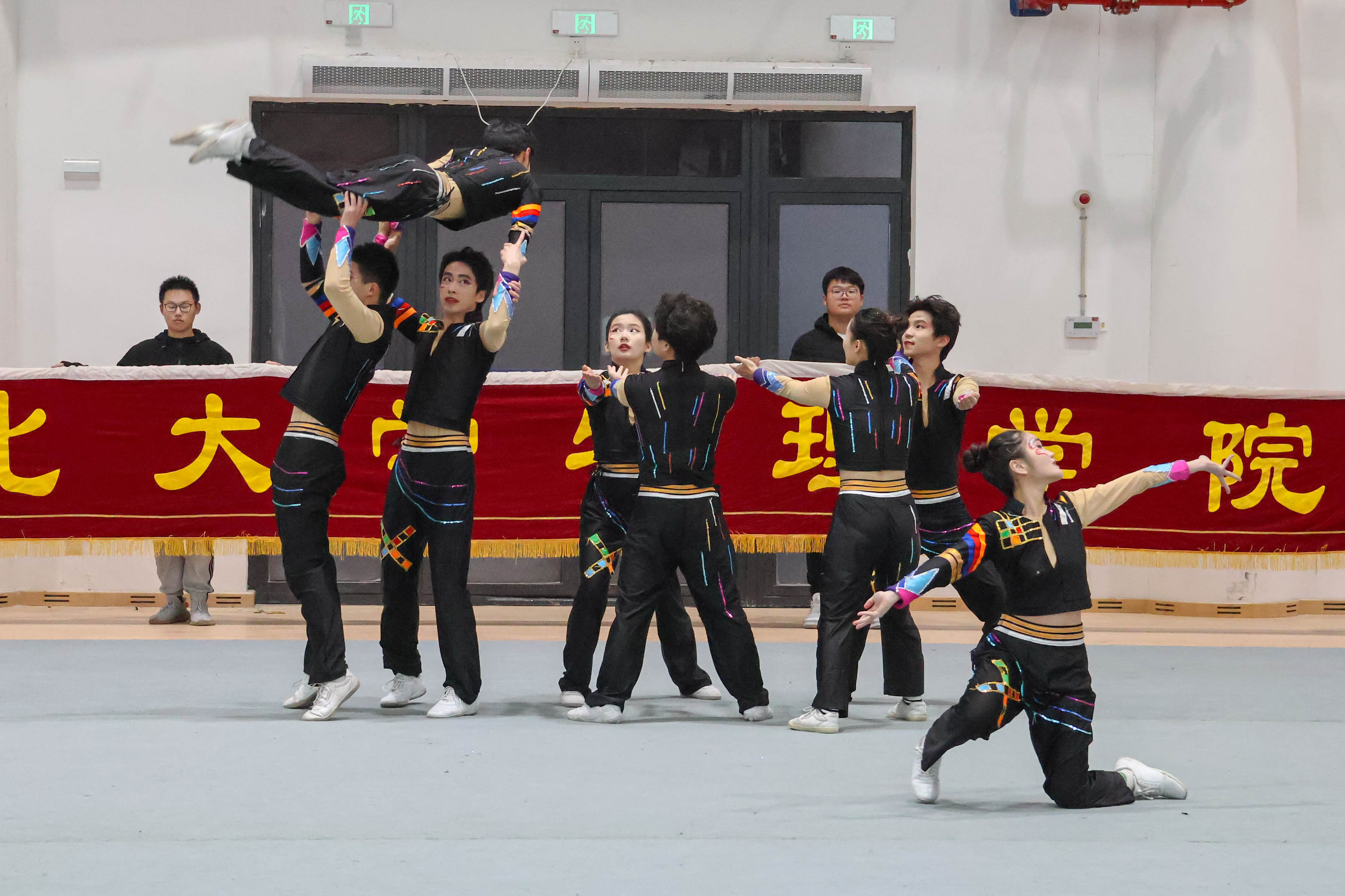 塑健康之魂,秀窈窕之姿。赛场上的他们激情万分、活力四射,将技巧项目的“力”与“美”完美融合。随着音乐的响起,迅速进入状态,他们昂首挺胸、步履轻盈、斗志昂扬、激情飞扬,迸发出青春无穷的魅力。音乐的推进下,队员们舞姿矫健,配合默契,托举、腾空、翻转……一个个高难度动作瞬间点燃了现场的氛围,引得在场观众连连惊叹。