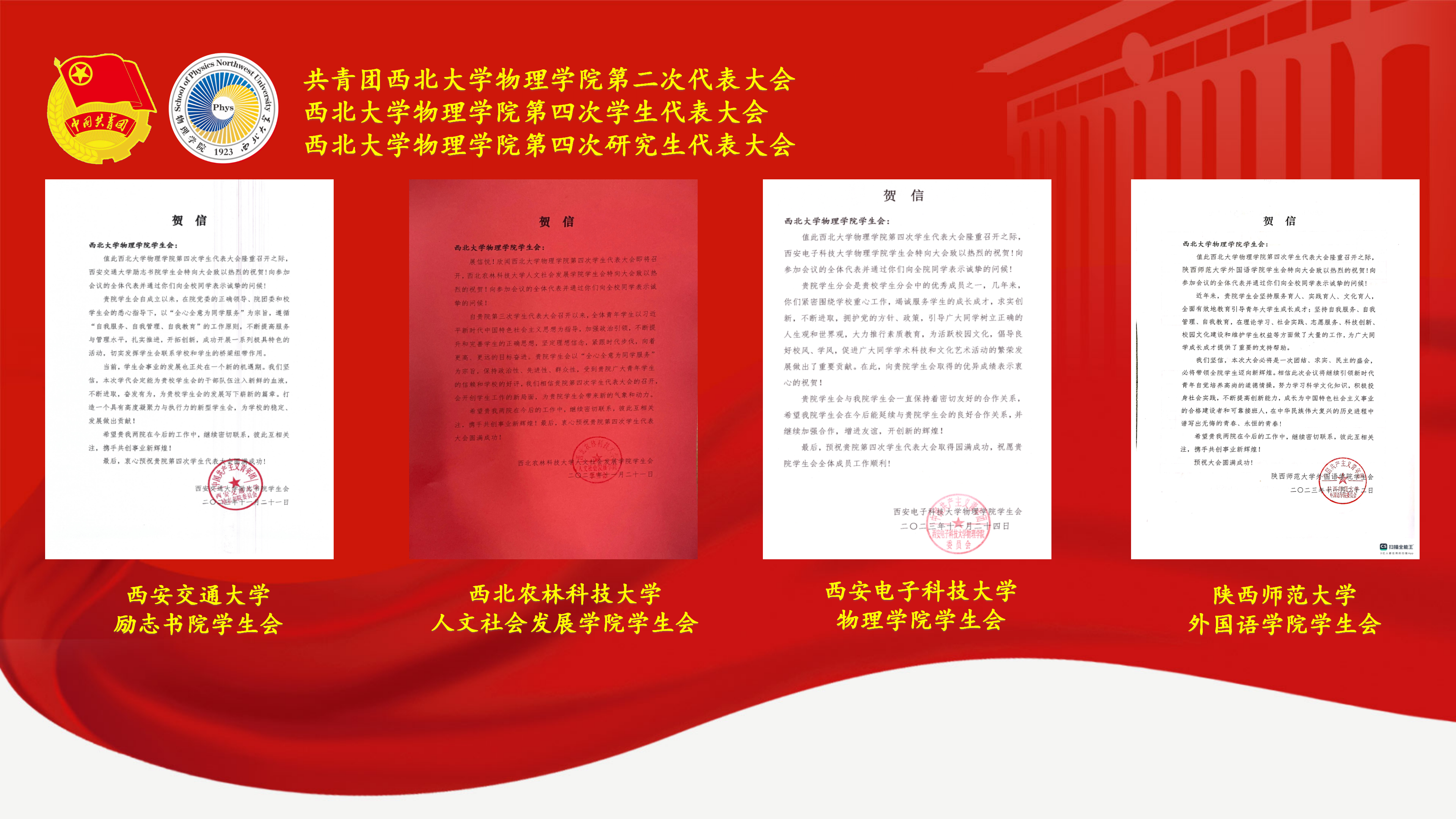 本次大会收到了来自航天九院771研究所、西安交通大学、西北农林科技大学、西安电子科技大学、陕西师范大学、长安大学、西安建筑科技大学等兄弟单位发来的贺信。