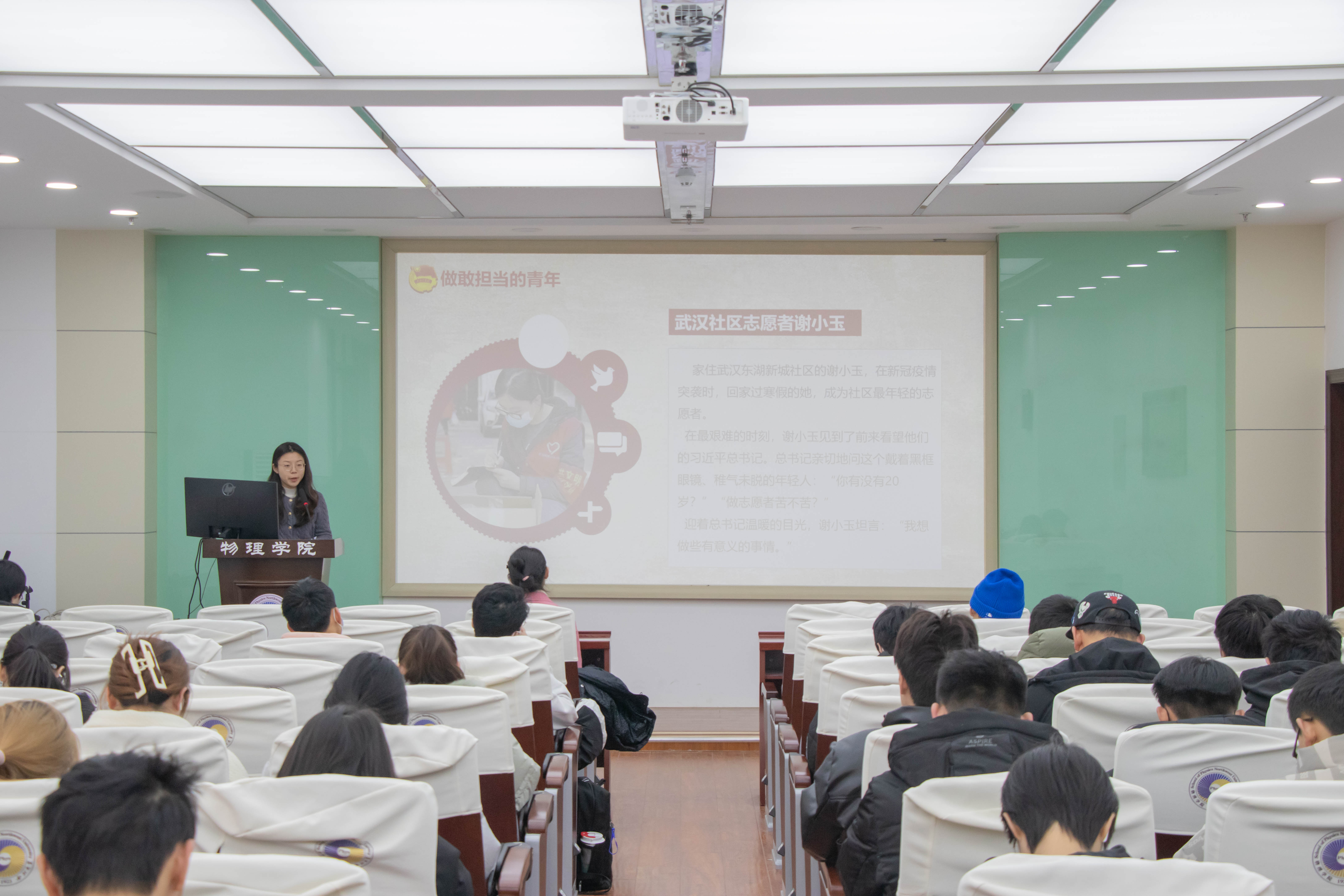 青年先锋宣讲团张煖同学以“让青春在新时代焕发绚丽光彩”为主题,从“做有理想的青年”“做敢担当的青年”“做能吃苦的青年”“做肯奋斗的青年”四个方面进行了宣讲。广大青年要坚定不移听党话、跟党走,怀抱梦想又脚踏实地,敢想敢为又善作善成,立志做有理想、敢担当、能吃苦、肯奋斗的新时代好青年,让青春在全面建设社会主义现代化国家的火热实践中绽放绚丽之花。