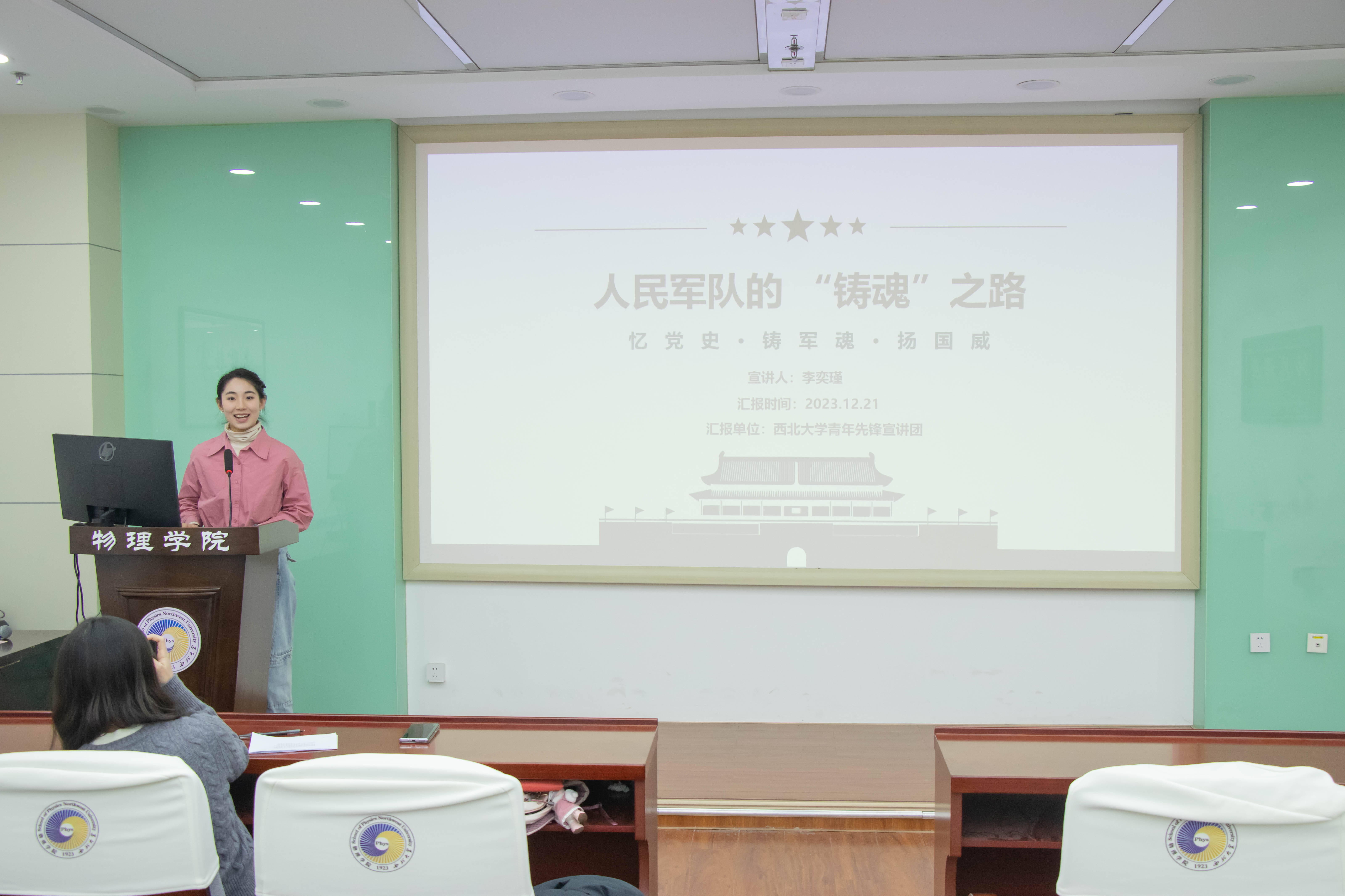 青年先锋宣讲团李奕瑾同学以“人民军队的‘铸魂’之路”为主题,帮助同学们充分了解到,中国共产党领导人民军队在血雨腥风中奋起战斗,在硝烟烈火中发展壮大,在艰难险阻中砥砺前行,从小到大、由弱到强,战胜了国内外强大敌人,不断从胜利走向新的胜利。中国共产党在领导建设强大人民军队的伟大实践中,积累了丰富而宝贵的历史经验,为实现党在新时代的强军目标、全面建成世界一流军队提供了丰厚滋养。