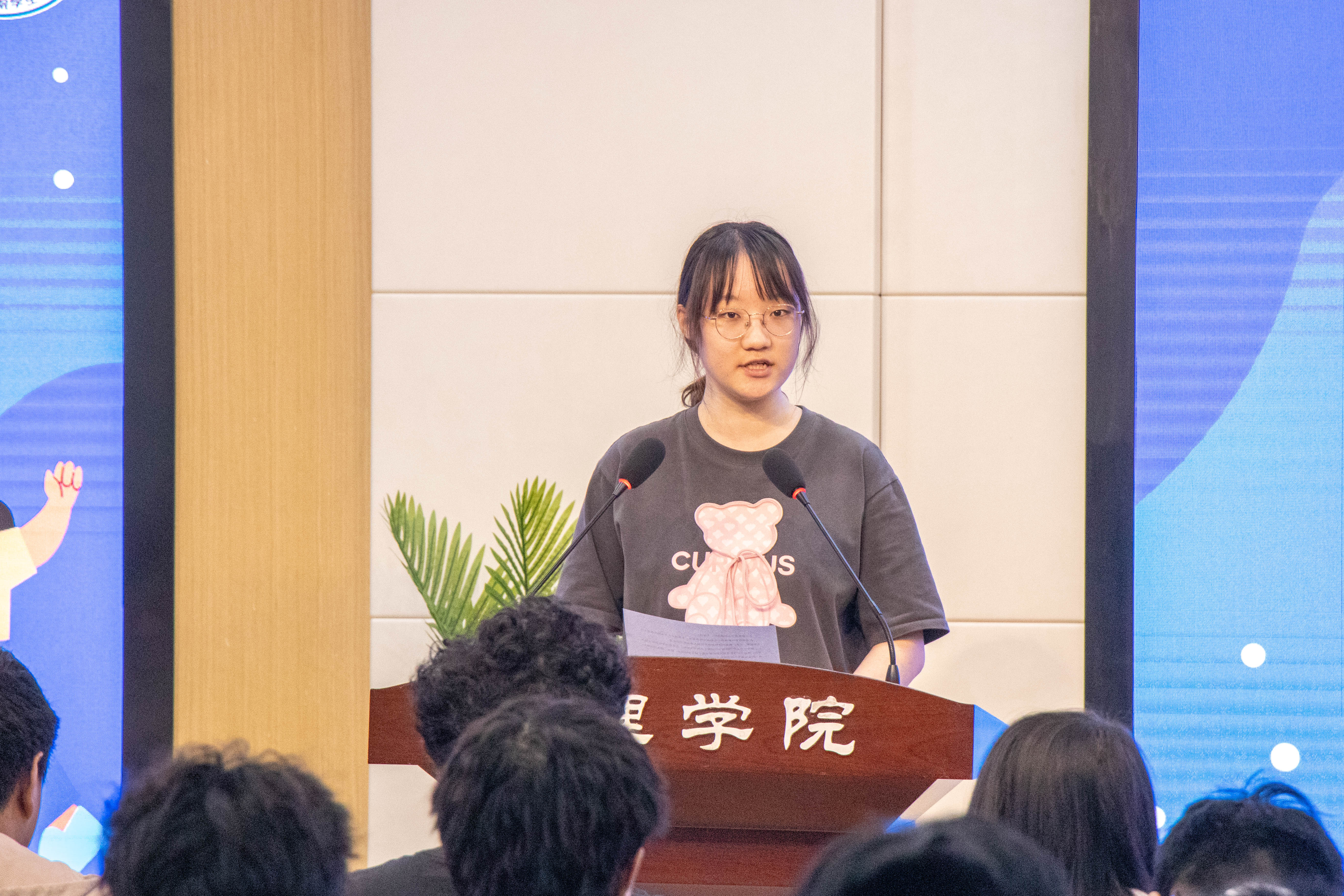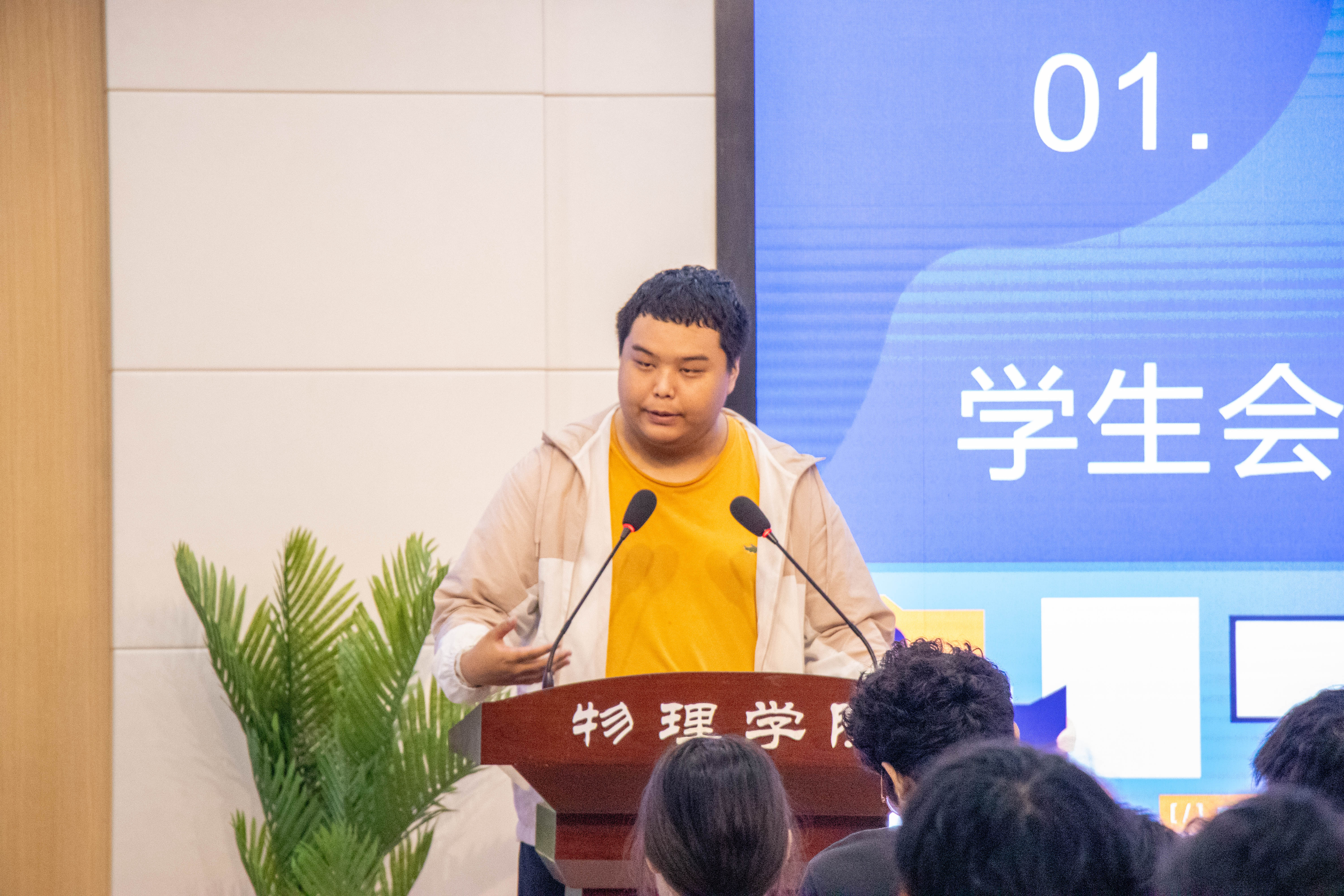 徐博阳同学代表学生会主席团进行发言。他详细介绍了学生会的日常工作和相关职能,并指出,学生会是连接同学们与学院的桥梁,是全心全意为同学们服务的组织。