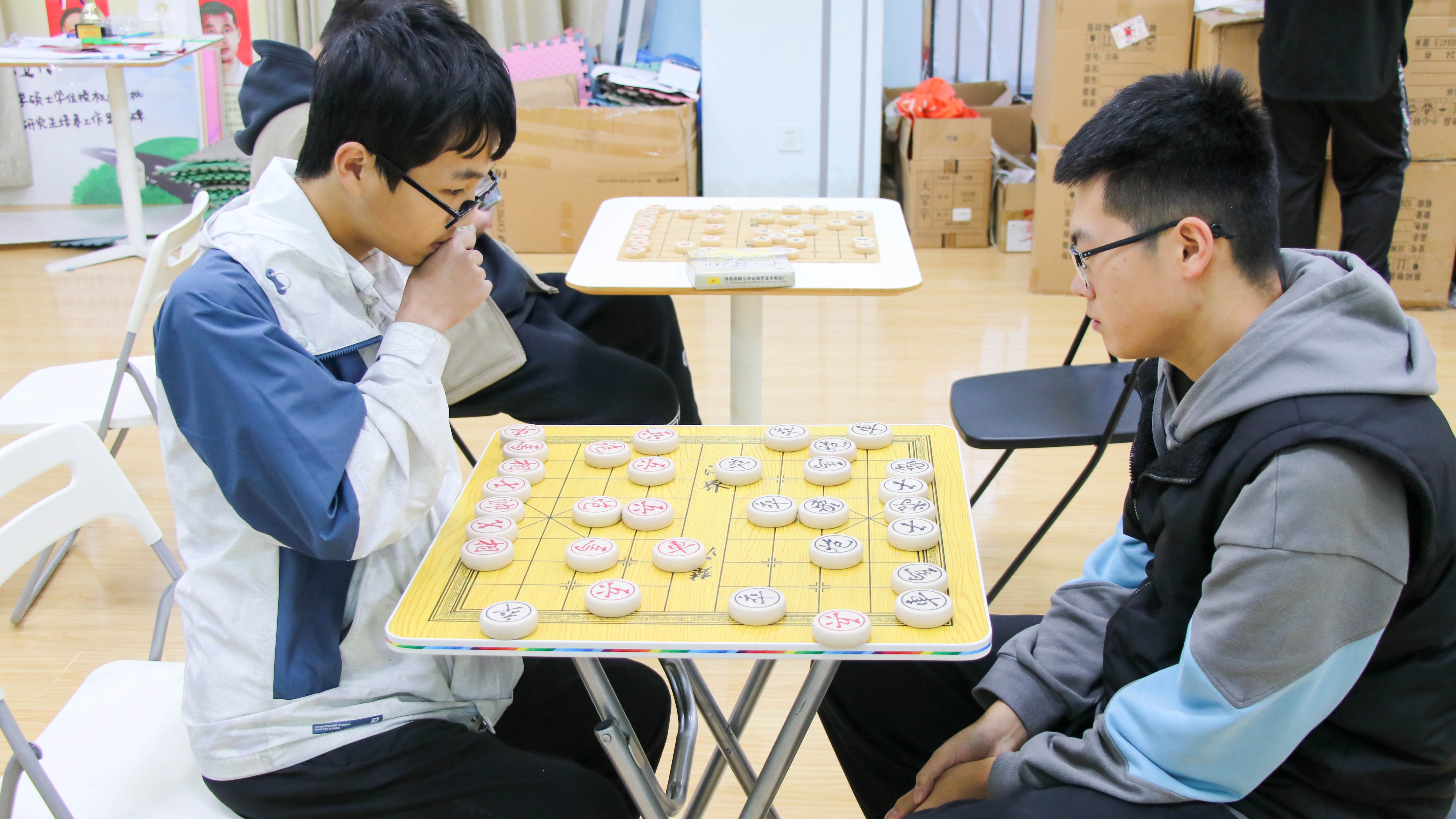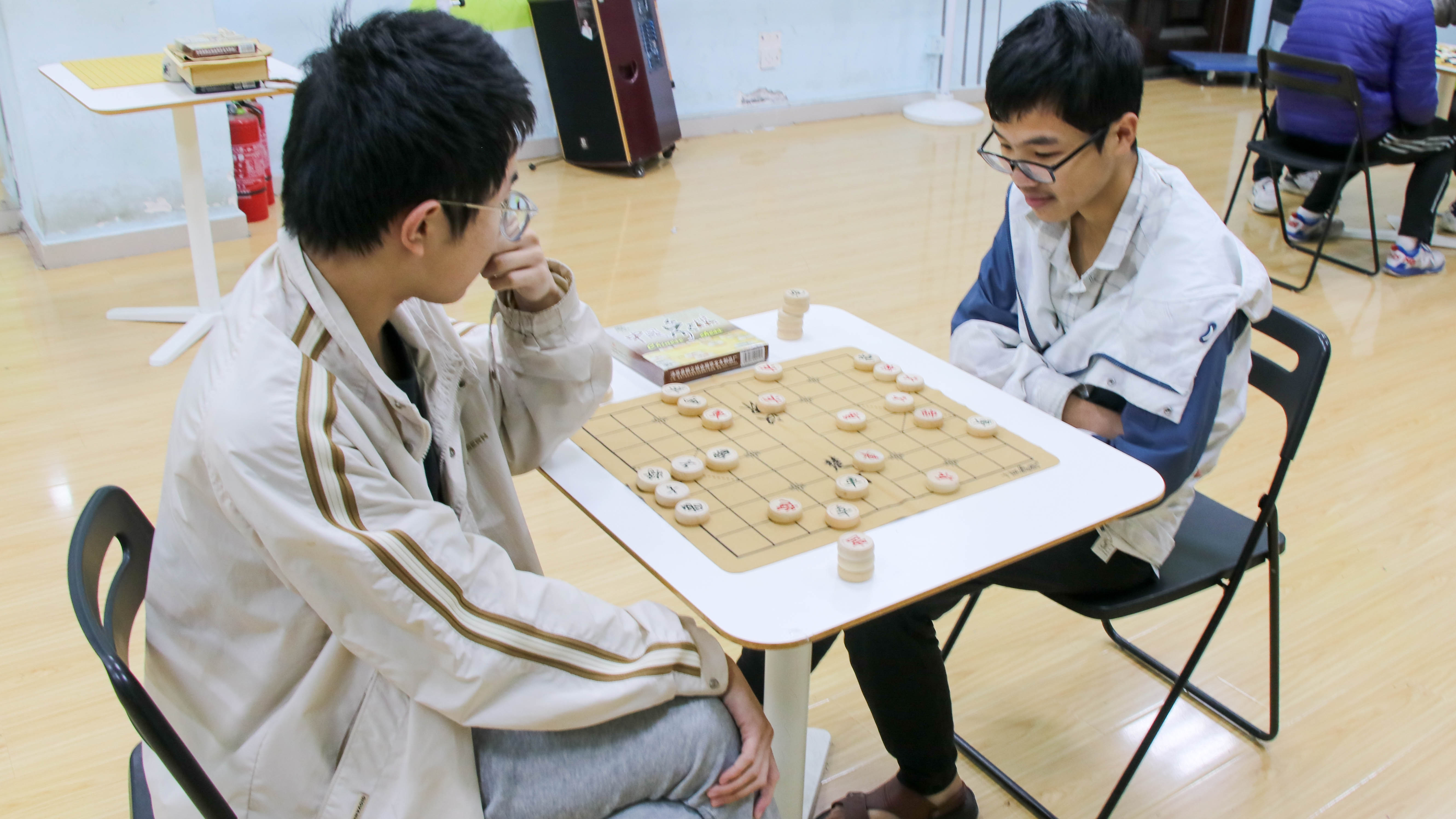 看,这边的是象棋组,两军对垒,狭路相逢,车马相炮,勇者必胜。但象棋并非“一鼓作气,再而衰,三而竭”的破釜沉舟之势,而更像是增兵减灶,更像是草木皆兵,一兵一卒,好似诸葛空城妄诈于司马,丝毫不畏将相之威风。