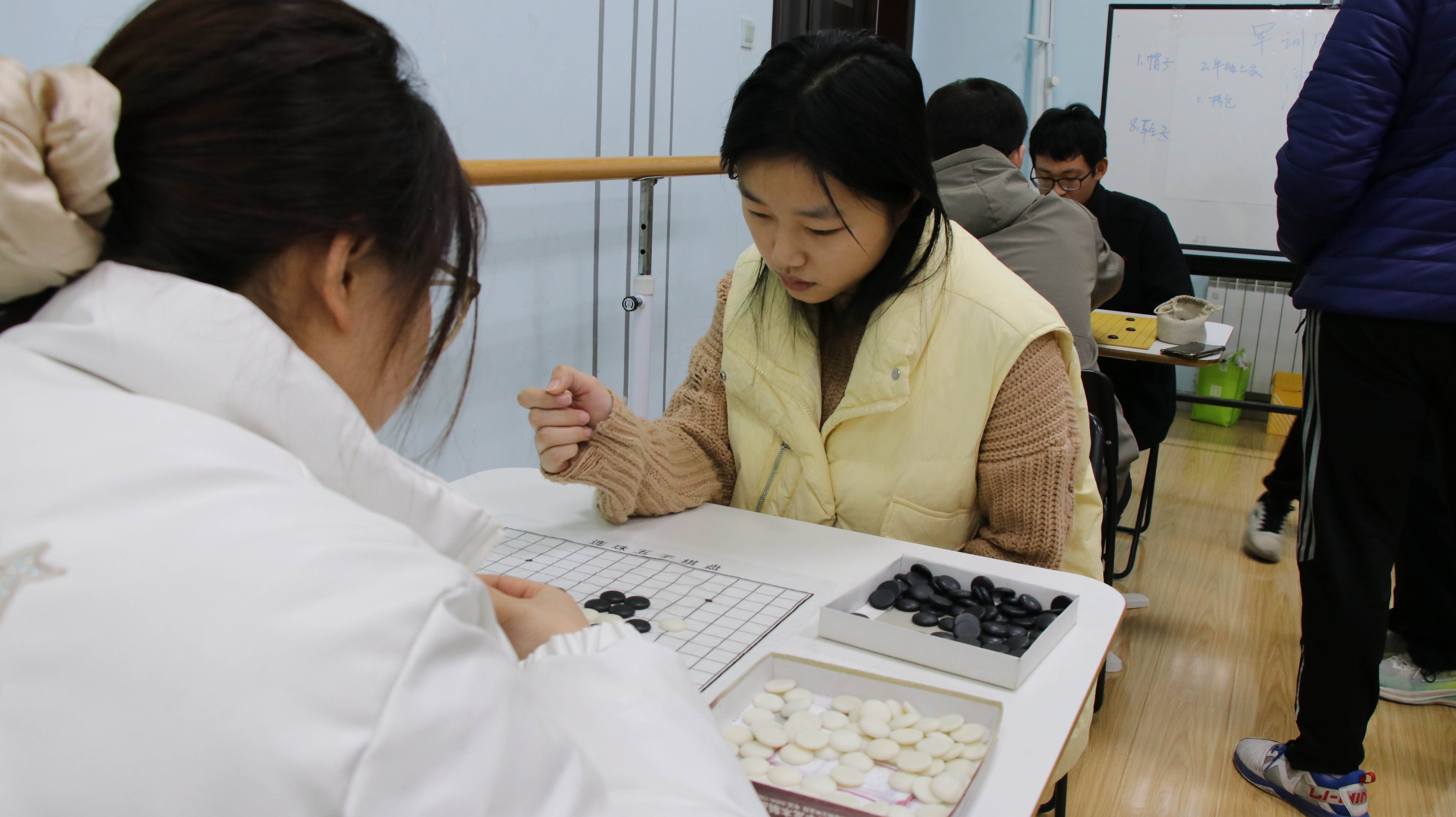 最后,让我们来到围棋的比赛现场。一收刚刚的轻松气氛,这扑面而来的气场与压迫感忽地袭来,只见双方选手眉头紧闭,以手托腮,似乎能从眉宇之间看出其对棋局的百步之解。象棋乃从有到无之博弈,手上有兵权,即使像长平之战纸上谈兵之赵括者,亦能上阵冲杀,杀他个十七八百。而围棋可谓是无中生有,玄之又玄,看似是一方胜券在握的围走逃窜,山穷水尽峰回路转,实则却是另一方诱敌深入的纵深之缓,待重整旗鼓,左右开攻,硬是能从死局中找出活解。一个小时的博弈,更考验的是双方的毅力。