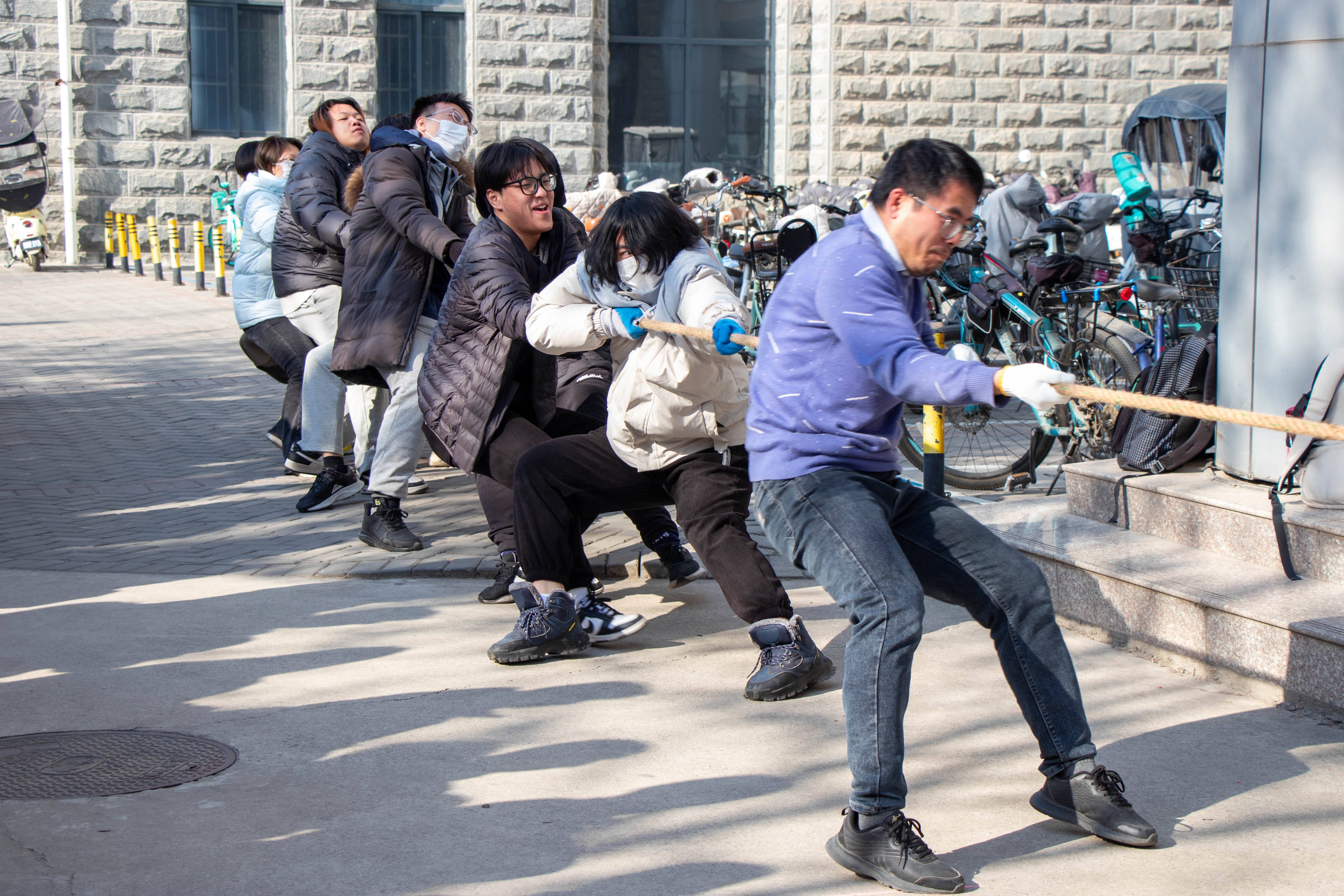 为进一步丰富师生的课余生活,促进彼此间的交流,营造良好氛围,锤炼强健体魄,2025年1月8日中午,366net必赢官网冬季师生拔河赛如期举行。十支参赛队伍及其所在班级班主任、辅导员老师参加本次活动,活动由学生会体育部武钊洋同学主持。