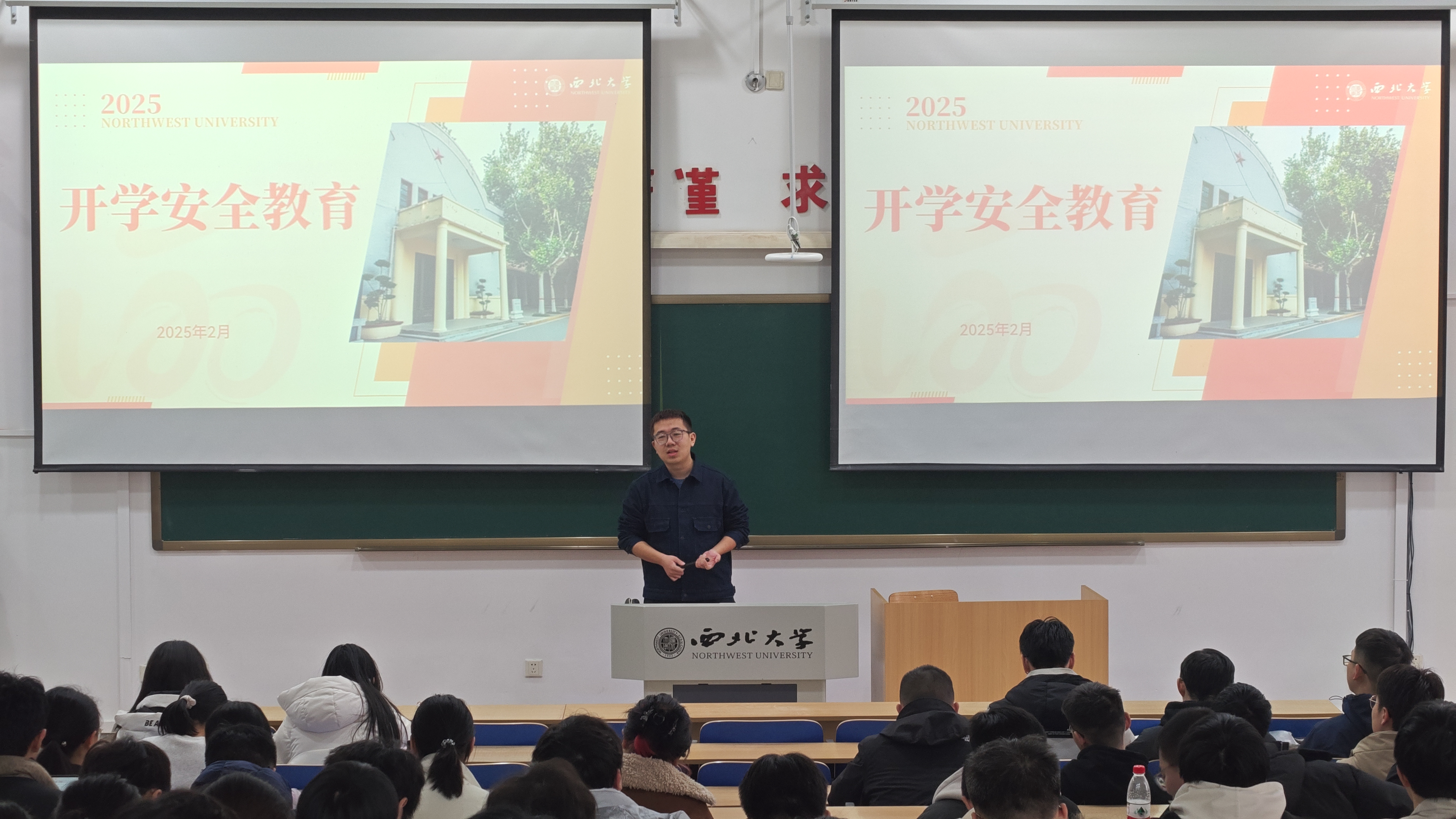 为帮助学生尽快适应新学期的节奏,确保学习生活安全有序,2025年2月27日下午,学院面向2023级本科进行了一次集体开学安全教育。辅导员吴嘉琦老师参加本次活动。