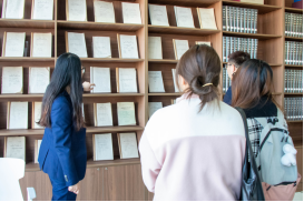 首先,同学们参观了西大文库。西大文库是西大人的精神传承站。在这里,陈列着许多西大学人校友的书画作品,每一幅都彰显着西大人的文与雅;展厅内还有西大名师、学者们教学时的讲义、幻灯片、论文批注等科研教学资料,同学们跨越时空,聆听西大名师、专家学者们的教诲;这里还能看到学人校友们在西大求学时的毕业论文,同学们由此见证了西大著名学人校友们本科、硕士、博士阶段的研学之路。