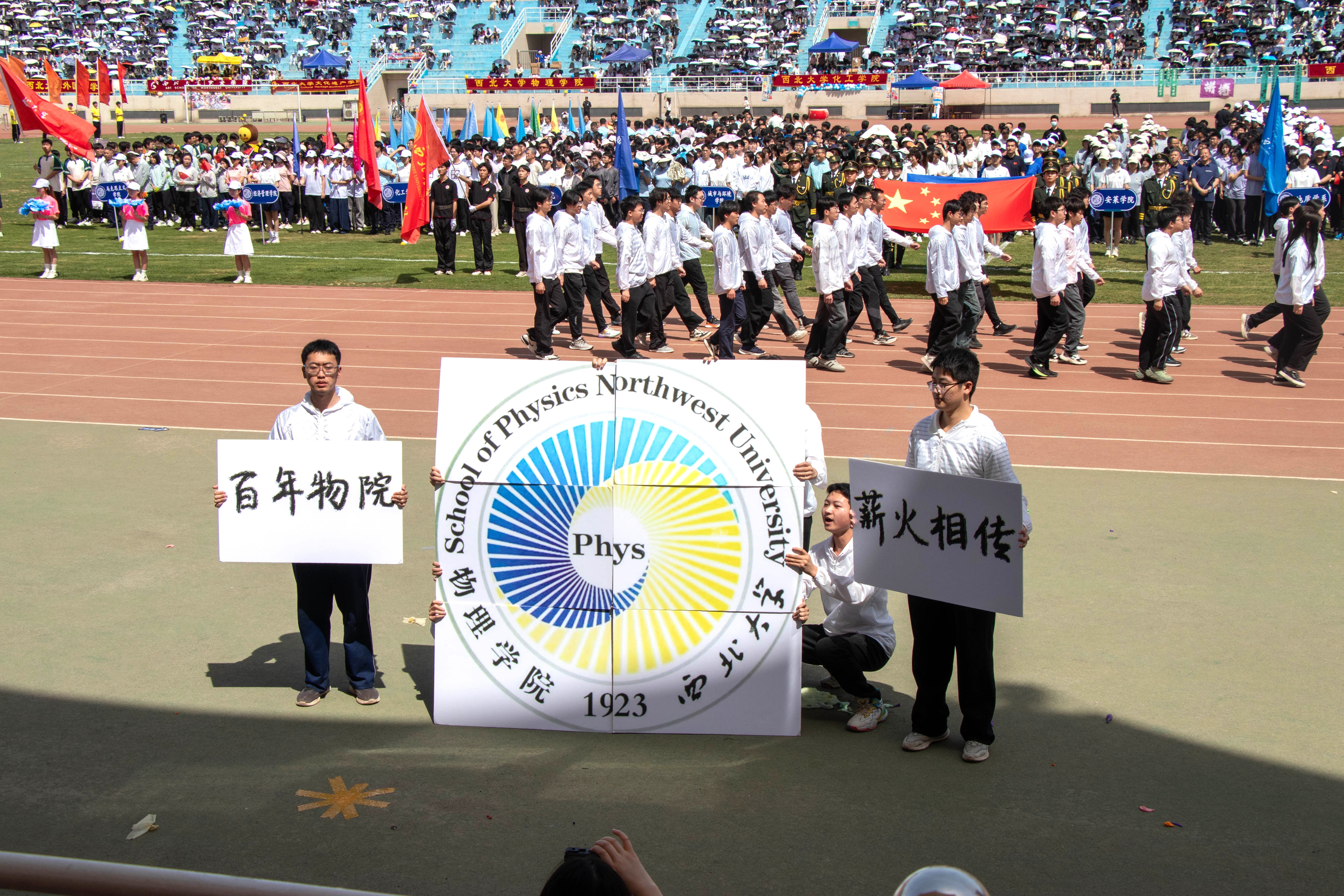 “西北上庠,物语轩昂。理学高深,共创辉煌。”“健康生活,快乐工作,齐心协力,振兴物理。”