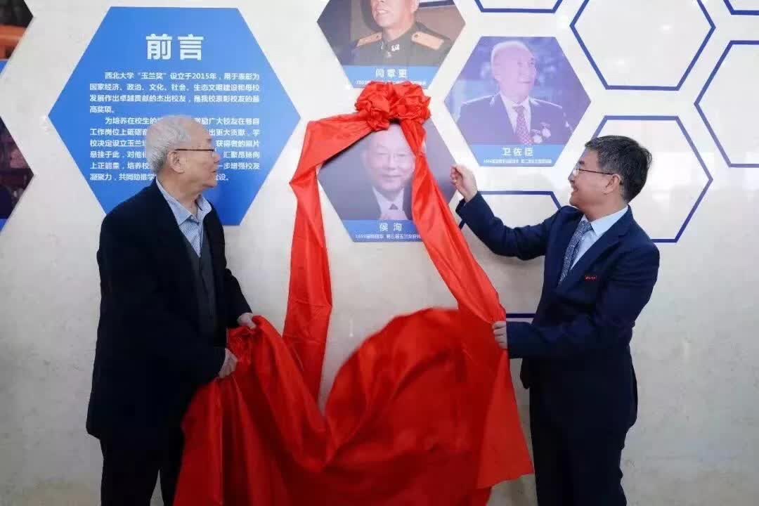 校党委王亚杰书记、郭立宏校长为两位杰出校友颁发了荣誉证书。会后,与会省委、省教育厅领导和学校领导与两位校友在玉兰芬芳墙前亲切合影留念。