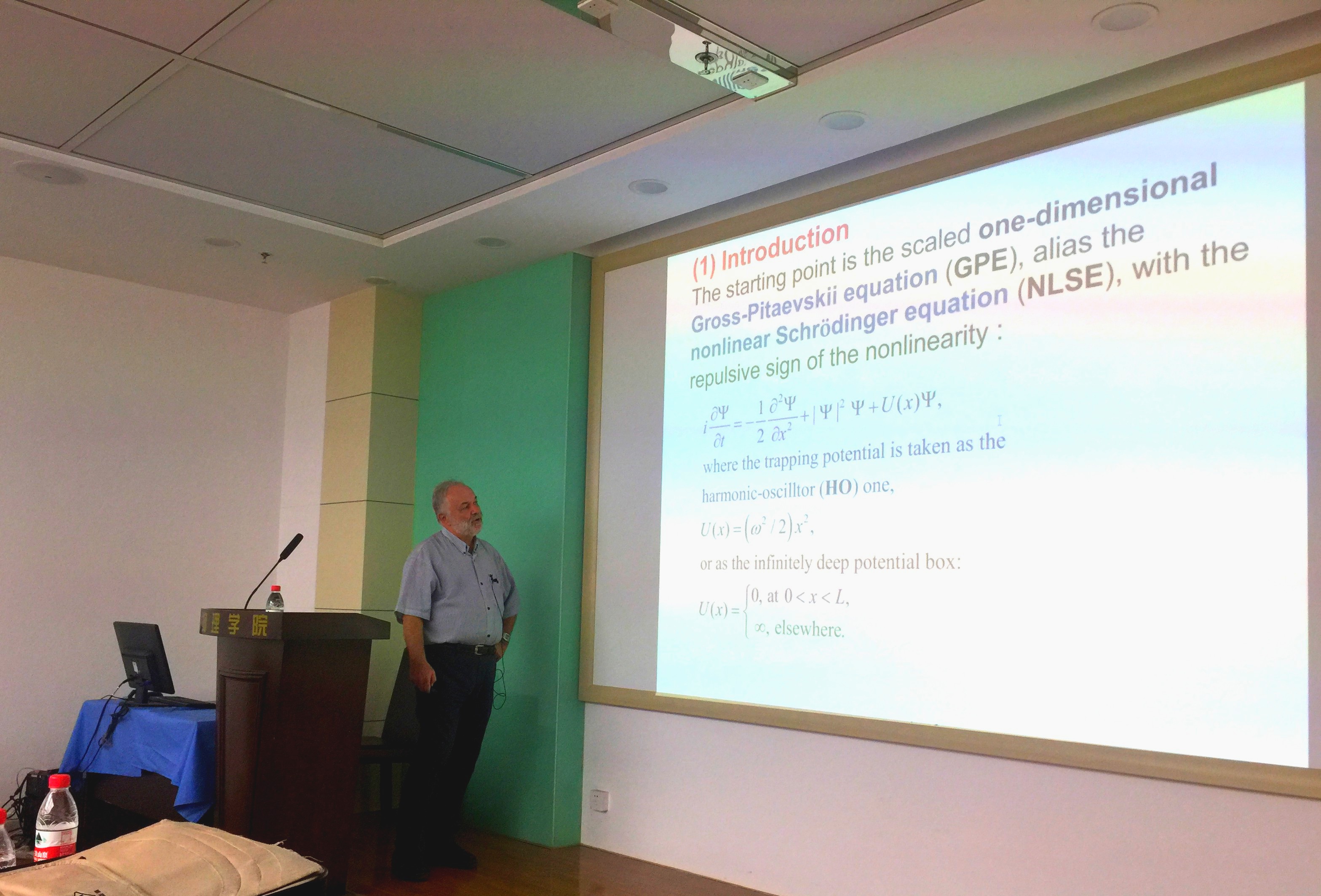9月6日,由我校科技处、党委组织部、科协主办,366net必赢官网承办的“366net必赢官网创新论坛”第七百六十八讲暨“弘扬爱国奋斗精神、建功立业新时代”系列活动在长安校区举行。以色列特拉维夫大学Boris A. Malomed教授应邀来校为师生做了题为“Probing quasi-integrability of the Gross-Pitaevskii equation in a harmonic-oscillator potential”的报告。我校相关专业师生代表参加了报告会。