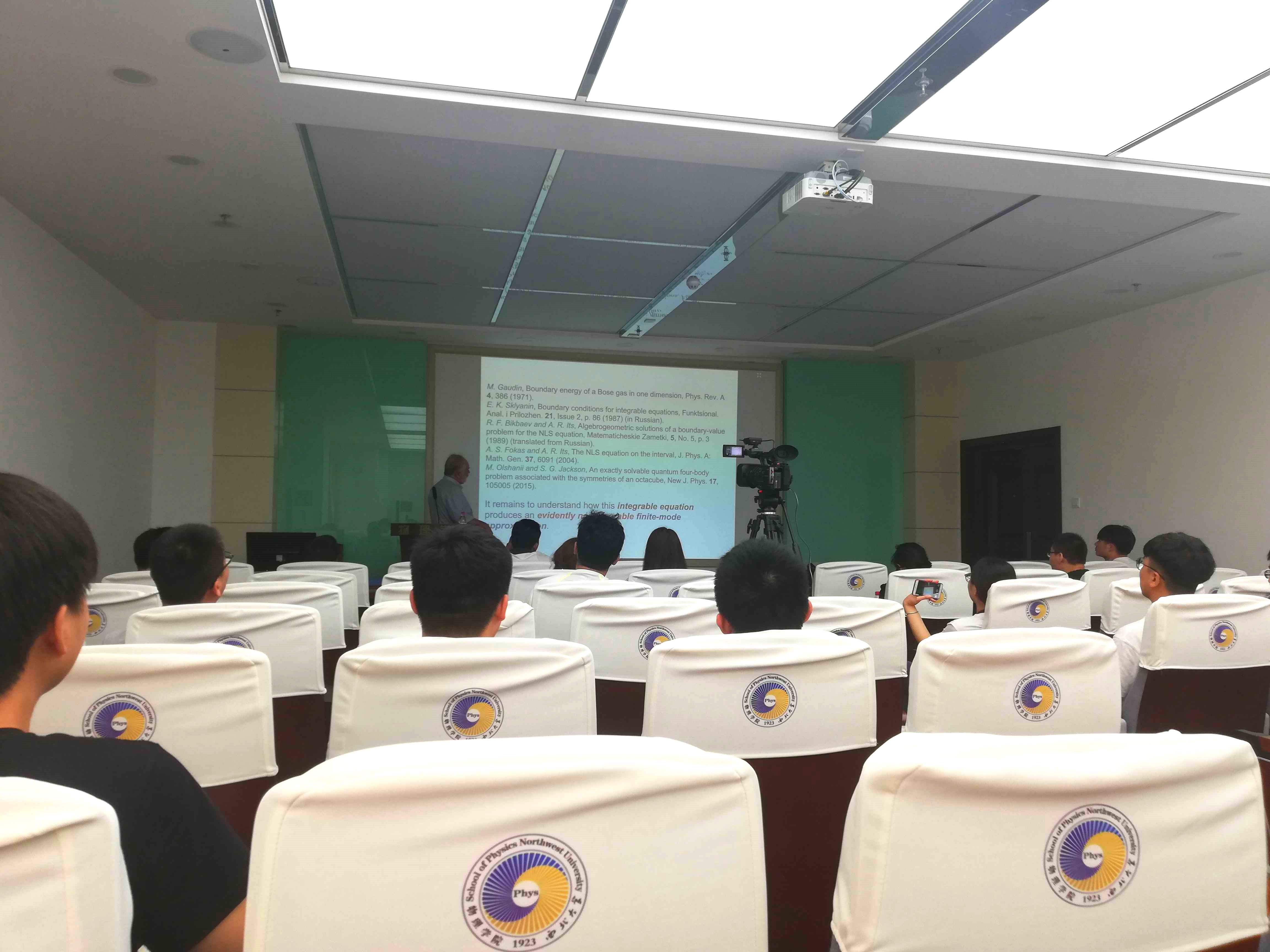 Boris教授基于可积物理模型的研究进展和相关的实验背景, 详细讨论了带有谐振子势一维准可积模型的孤子振动模式。利用谐振子本征模重构非线性模型下的动力学,并分析了系统的能量谱特征。初步建立了系统准可积性跟能量谱离散性之间的关联性,并通过数值研究揭示了不可积性跟能量谱连续性之间的对应关系。