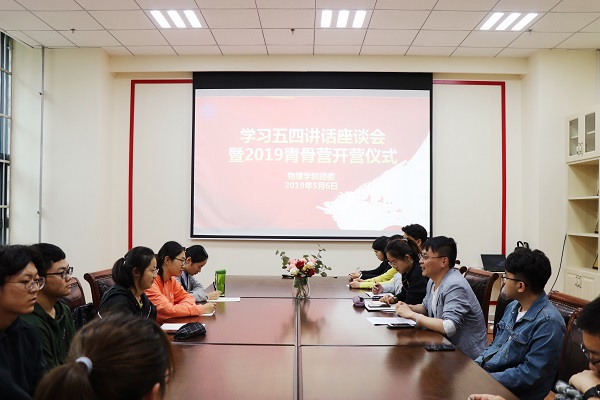 座谈会上,大家纷纷表示习近平总书记的讲话深切缅怀了五四先驱崇高的爱国情怀和革命精神,高度评价了五四运动的历史意义,明确提出了对新时代中国青年的要求。团委副书记李佳敏同学介绍了罗家伦、匡互生、傅斯年等7位五四运动学生领袖不同的人生,激励大家勇于承担起时代责任,做新时代的优秀青年。团委组织委员唐林驰同学表示五四精神的主要内容是爱国、进步、民主、科学,其核心是爱国主义精神,并带领大家学习了习近平总书记对新时代青年提出的要求,鼓励大家时常对标这些要求鞭策自己。2015级应用物理团支部书记郭栋同学表示,伟人们曾经也是平凡人,他们的成功也都源于一点一滴的积累。希望大家能够利用好时间,脚踏实地地做好每一件事情。接着全体人员一同观看学习了习近平总书记在纪念五四运动100周年大会上的讲话。