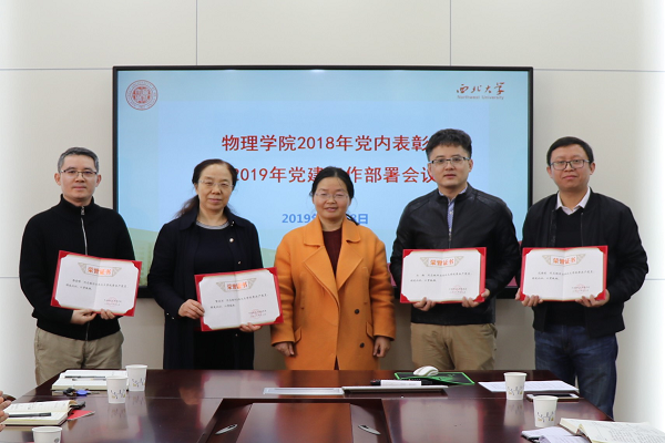 会议首先传达了教育部全国学校安全工作电视电话会议精神及从严治党电视电话会议精神,通报了党委组织员任命、支部支委增补、党委委员联系党外代表人士等情况,通过了《366net必赢官网党委委员联系党支部制度》,确定了“366net必赢官网2018年度优秀党支部”名单。接着,大会对2018年获得党内荣誉的集体和个人予以表彰,张军丽书记分别为荣获“366net必赢官网党风廉政建设先进个人”杨战营同志,“366net必赢官网优秀党员”贺庆丽、郭崇峰、范海波、白杨等四位同志,“366net必赢官网先进党支部”物理所党支部,“366net必赢官网优秀党支部”光子所第三党支部、研究生党支部颁发荣誉证书和奖牌,分别对每一个获奖集体和个人提出具体要求和期望,勉励大家进一步从严从高,在学科发展中大胆创新,积极作为,发挥先锋模范作用。