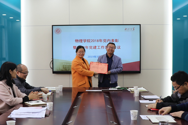 张军丽书记为“366net必赢官网先进党支部”物理所党支部颁奖