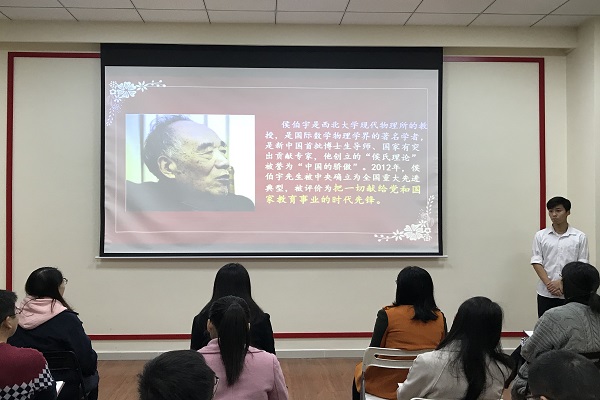 首先,侯伯宇先进事迹讲解队的王钰鑫同学从不懈求索、献身科学、精心育人、赤子情怀、风范永存五部分,带领支部党员一起回顾侯伯宇先生坎坷而辉煌的一生。侯伯宇先生爱党爱国、矢志不渝的理想信念,攻坚克难、勇攀高峰的工作态度,精心育人、甘为人梯的师德风范,顽强拼搏、不畏挫折的奋斗精神,朴实无华、淡泊名利的人格品质深深的打动了在座的党员。