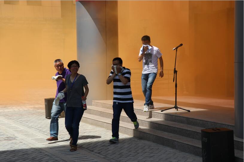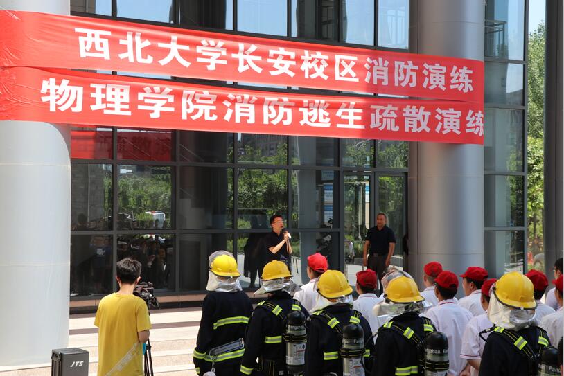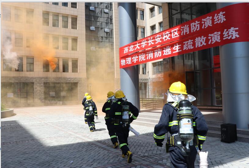 下午2点30分,消防演练活动总指挥、校党委副书记赵作纽宣布演练开始。保卫处工作人员宣讲了演练要求和注意事项。随后,物理大楼北楼二层实验室起火,另有一人被困三楼实验室。楼道楼梯间立即浓烟翻滚,消防警报拉响。教师和学生按照演练要求和注意事项,迅速有序的从逃生通道下楼集结。整个演练过程在5分钟内完成,参演人员听从指挥,组织有序,撤离及时,逃生疏散演练活动圆满成功。