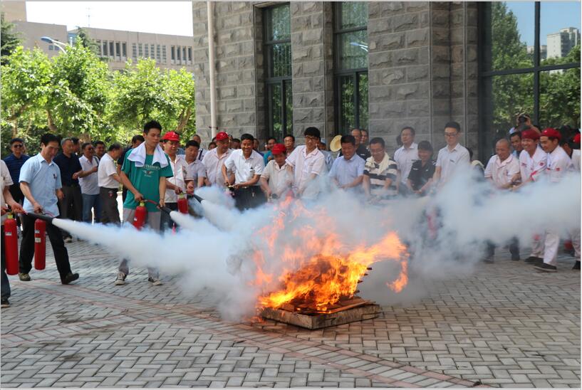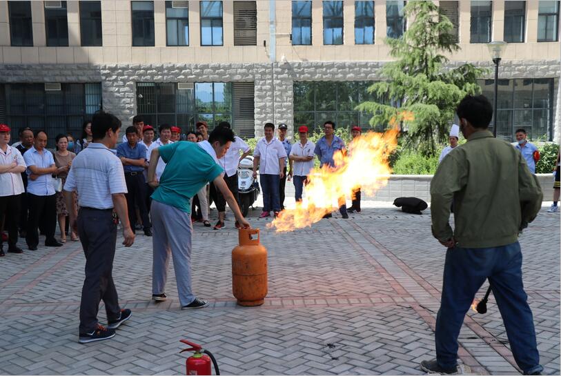 逃生疏散演练结束后,还进行了灭火器灭火的实践演练活动。