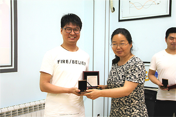 杨文力院长向毕业生代表赠送毕业纪念品