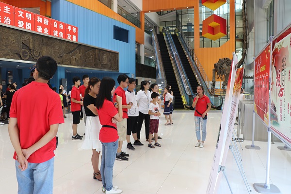 25日,在延安科技馆,队员们分组进行讲解。展板讲解和有奖问答相互配合,用精彩的讲解和精美的纪念品吸引了一大批观众,一整天的活动结束后,众多精美纪念品也全部发放完毕。趣味物理实验组队员和我校化学与材料学院实践队队员互相配合,分别从物理和化学两个方面向小朋友们科普科学小常识,精彩有趣的物理小实验和神奇炫目的化学小实验,引导孩子们思考和探究科学世界。话剧组同学们的两场话剧表演向科技馆的众多游客宣传了侯伯宇先生的先进事迹。