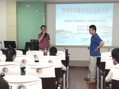 物理学午餐学术沙龙第六讲-- 钙钛矿界面 VS光与介质相互作用,于6月7日(周四)中午12:30在劼恒多媒体教室成功举办,主讲人为冯宏剑教授和张文静博士。沙龙由范海波副教授主持,物理学科师生40余人参加了本次活动。