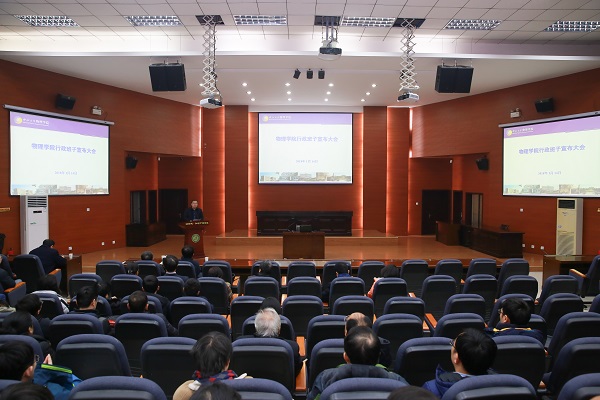 郭立宏校长在讲话中对学院上一届行政班子做出的贡献表示感谢,对新一届行政班子的成立表示祝贺。他要求新一届行政班子,一要抓改革,围绕“政策突破、机制创新和投入增加”三个方面,解决发展过程中的瓶颈和短板,解决事业推进的动力和活力。二要抓融合,在保持物理学科优势的基础上,持续加强平台建设,发掘内部潜力,融合一院两所资源;发扬侯伯宇精神的示范引领作用,将传统优势和时代发展相融合。三要抓凝练,以宽广的胸怀和宽广的视野,凝练学科方向,促进学院事业发展。四要抓团队,巩固现有团队,导入新的科研资源,与中科院进行全面合作,推进校所深度融合。五要抓人才,发动全院教职工,通过各种方式引进人才,同时搭建桥梁促进人才的对外合作交流,注重引育并举。