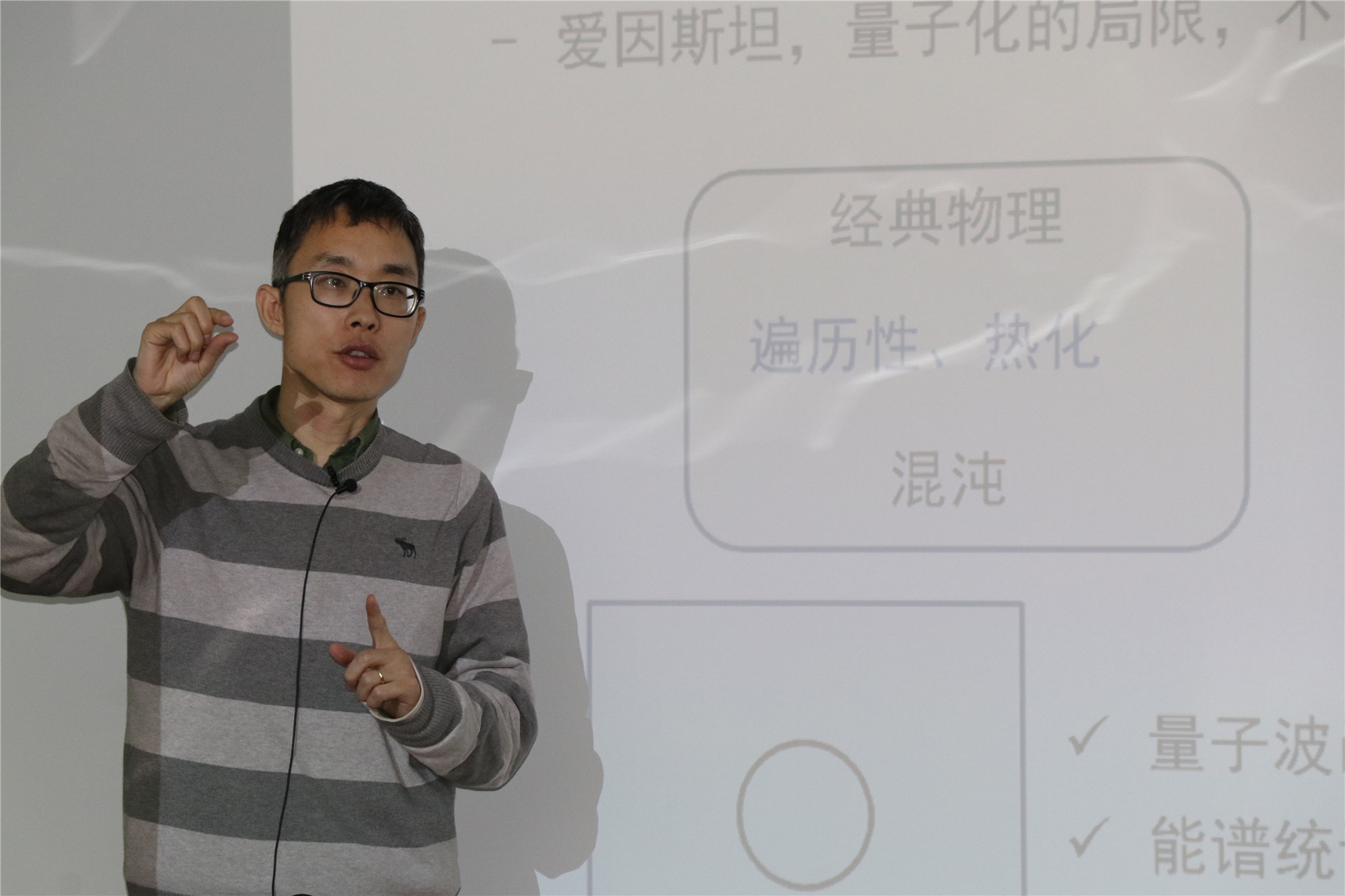 黄亮教授通过介绍量子力学的一个重要基本问题——经典量子对应,阐释了量子混沌研究的主要内容是经典的混沌运动在相应量子系统中的体现。黄亮教授向我们讲述了相对论性量子系统,并系统考察相对论性在经典量子对应中引入的新奇效应。最后,黄亮教授展示了团队在非零质量狄拉克弹球量子化方面的新进展。