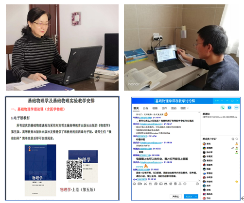 为适应在线教学新情况,确保教学质量不滑坡,根据学科和专业特点,全院教师共组建课程教学群77个,不同层次课程讨论小组12个。其中,基础物理学公共课课程群26个,专业理论课课程群38个,实验教学群13个。公共课负责人、专业负责人对照教学计划逐课程逐教师落实课程进展。