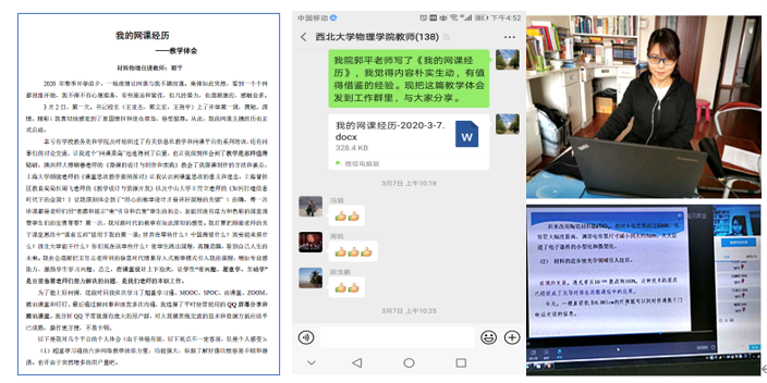 教学质量保障的最后关键因素是要落实在学生自身。在特殊时期,也是培养学生自主学习能力,锻炼学生互助学习,共同进步的机遇。学院以干部和社团负责人为核心,组建教学信息发布群。在群里统一进行思想教育、发布教学信息、收集处理困难问题、组织教学援助辅导。与学院团委及学生工作办公室紧密配合,利用“西大物理圈”公众号,组织疫情相关的课程培训和交流讨论。对重点疫区学生,组建临时团支部,实施针对性关怀和帮助。