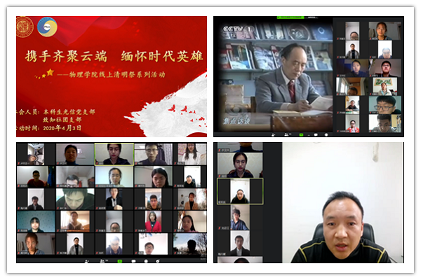清明时节,为纪念缅怀革命先烈、抗击新冠肺炎疫情斗争中牺牲烈士以及物理学科已逝先贤岳劼恒先生、侯伯宇先生、罗健夫先生,在366net必赢官网党委号召下,各党支部积极组织师生党员,通过开展系列网上纪念活动表达深切哀悼和敬仰追思。