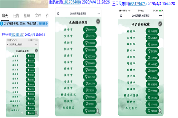在这个特殊时期,清明纪念活动愈显特别,意义深远。师生党员们纷纷登录陕西文明网相关链接参加“网上祭英烈”活动,为革命先烈和抗击新冠肺炎疫情斗争中牺牲烈士献上花束、抒写哀思。同时,支部自发举行“清明祭英烈”、“携手齐聚云端,缅怀时代英雄”等主题纪念活动,通过齐唱国歌、重温入党誓词、观看纪念视频、鞠躬默哀等方式,追忆悼念革命先烈、物理学科先贤以及抗击新冠肺炎疫情斗争中牺牲烈士和逝世同胞。在纪念活动中,大家回顾了革命先烈、人民英雄和学科榜样的先进事迹,感慨他们以普通人的平凡书写了不平凡的人生,为国家、为民族、为人民无私奉献甚至英勇牺牲。师生党员们哀悼逝者的同时,亦深受其崇高品质和宝贵精神的感染激励,更加坚定了追赶奋进的信心信念。