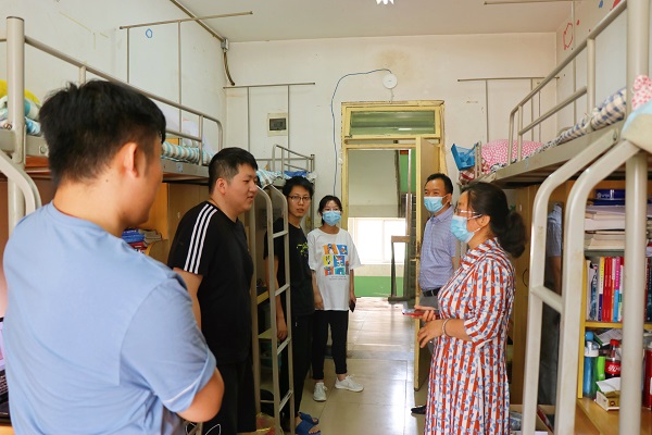 在本科生宿舍,老师们询问了学生返校后的学习和生活情况,了解了就餐、休寝、毕业论文答辩准备、考研复试结果及就业进展意愿等,及时回应了学生当下关心的问题和存在的困难等,希望返校同学能够顾全大局,克服困难,严格遵守学校防疫安排和管理制度,做好个人健康防护,高质量完成毕业答辩,尽快联系落实就业单位,合理安排毕业前在校生活,在西大留下最美好的青春回忆。