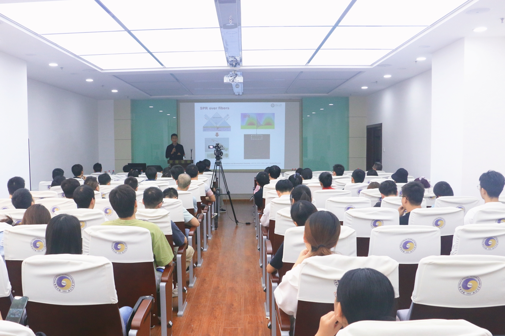 郭团教授首先介绍了光纤传感技术在生物医学领域的的应用,重点讲述了光纤等离子体共振传感技术与现代生物、能源传感相结合的检测新方法。其次,郭团教授展示了基于倾斜光纤光栅的等离子体共振生物医学与能源存储传感机理与关键技术。最后郭团教授提出光纤传感技术在细胞、蛋白、血糖、微生物、气体、超级电容、锂电池检测等领域具有广阔发展前景。
