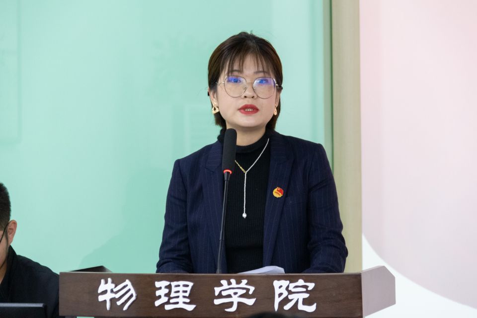 学生代表张夏烨受366net必赢官网学生分会主席团、研究生分会委托,作题为《践行服务宗旨,勇担时代责任,团结和引领广大物理学子永远跟党走,奋进新时代》的工作报告。