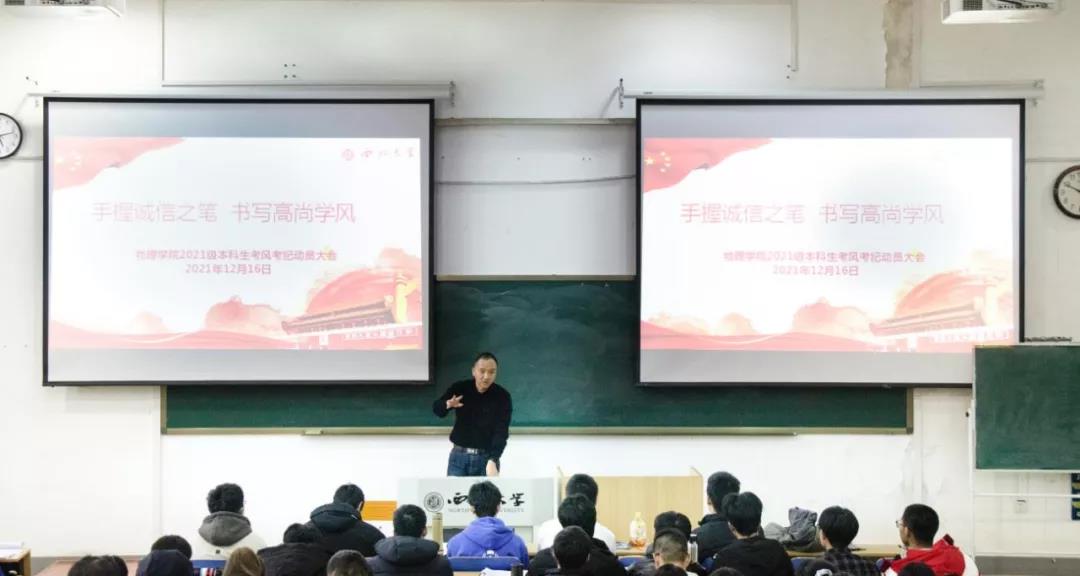 12月16日下午,必赢在4J301阶梯教室开展了题为“手握诚信之笔,书写高尚学风”的考风考纪教育宣讲会,学院党委副书记杨军良参加了此次宣讲教育会,大会由辅导员艾玉主持,2021级全体本科生参加了教育会。