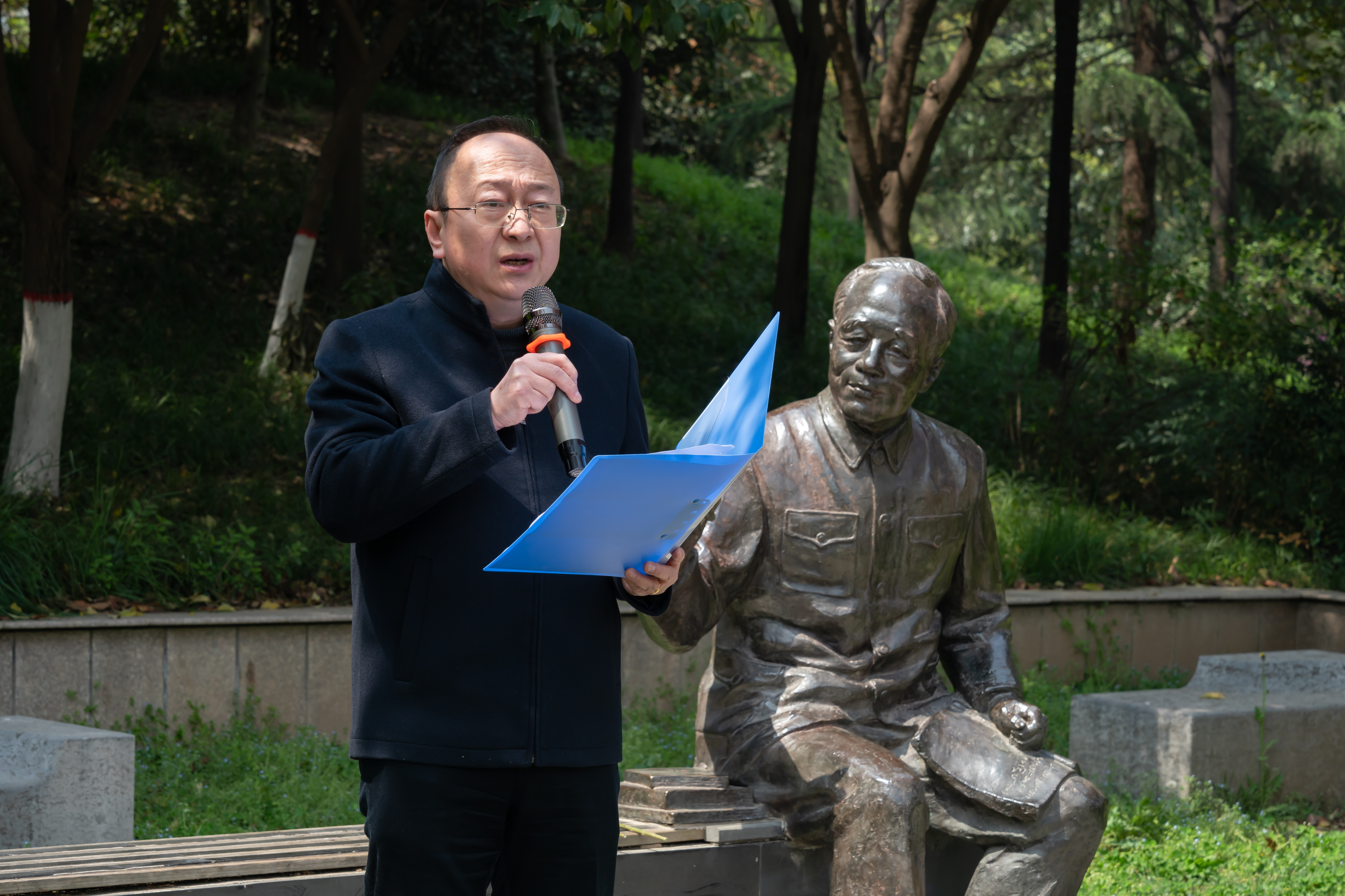 4月1日中午,必赢师生代表早早就来到了长安校区纪念活动现场,大家自觉对侯先生雕像周边环境进行了整理。在纪念活动伊始,师生们向侯伯宇先生雕像默哀三分钟,致知社成员代表为侯伯宇先生雕像拂去尘土。