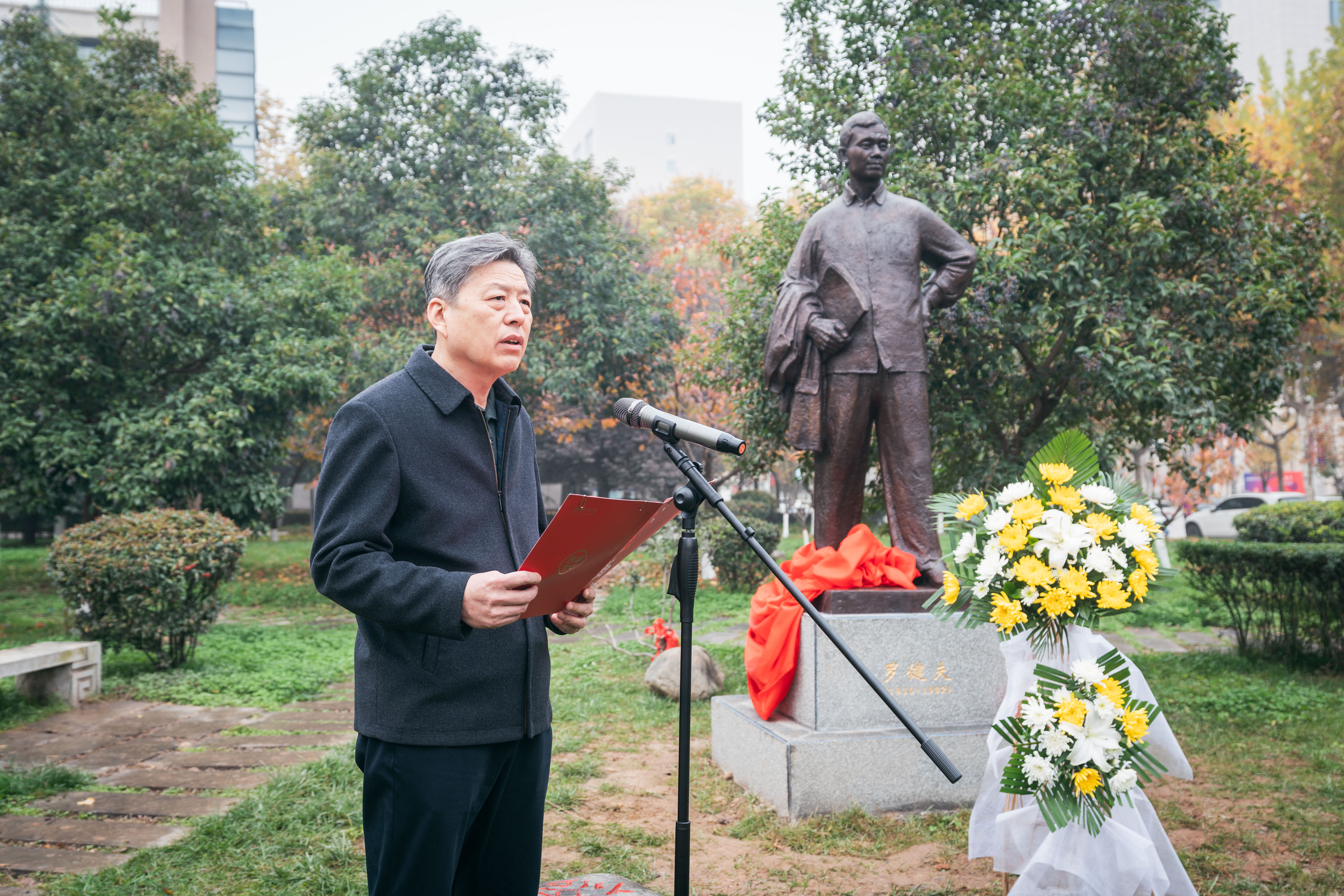 赵作纽在讲话中指出,罗健夫的先进事迹,是永远激励我们前进的精神富矿。他短暂的一生,闪耀着共产主义的精神光辉,他的精神品质将永不褪色。在我们认真学习贯彻党的二十大精神、热烈庆祝建校120周年之际,为罗健夫在校园立像具有深远的意义。他要求学校宣传好罗健夫的先进事迹,营造好向罗健夫学习的氛围,进一步传承弘扬他的优秀精神品质和科学攻关精神,在新时代新征程上,努力交出爱国奋斗的新答卷。